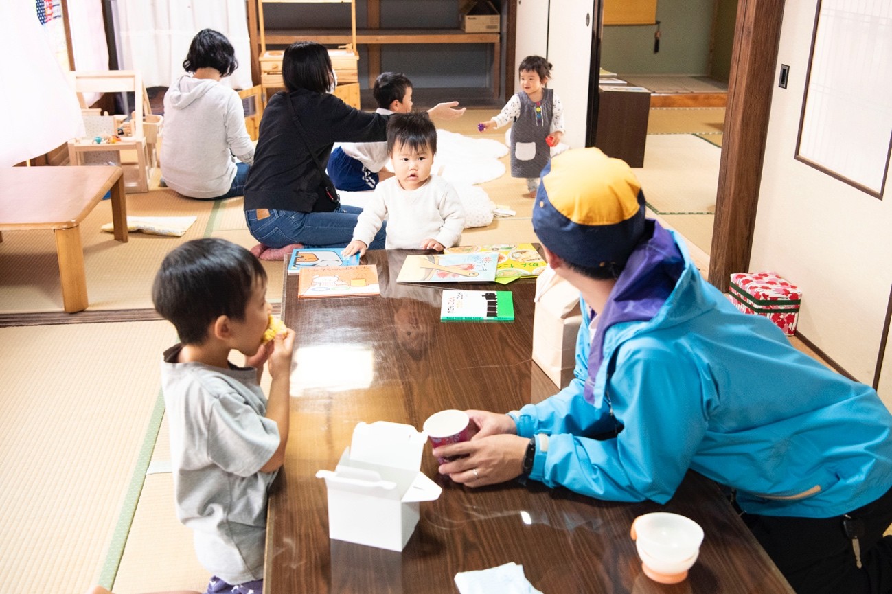 基本はお持ち帰りのカフェですが、絵本がたくさん用意されているので、子どもと絵本を読みながら、畳の部屋でゴロンと横になってみたり、お茶をゆっくり飲みながらママさん同士でおしゃべりをしたりと、自由なくつろぎの時間を過ごせます。