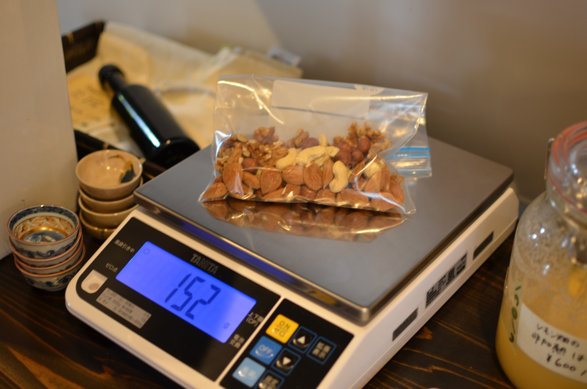 筆者もミックスナッツを買いたいと思い、お願いしました。「30gずつぐらいで良いですか?」と聞かれましたが、自分がどれくらいの期間でどれくらいの量を食べるのかが想像つかなかったので「お任せで」と返答。川口さんに相談しながら購入できるため、無理なく始めたり試したりすることができます。