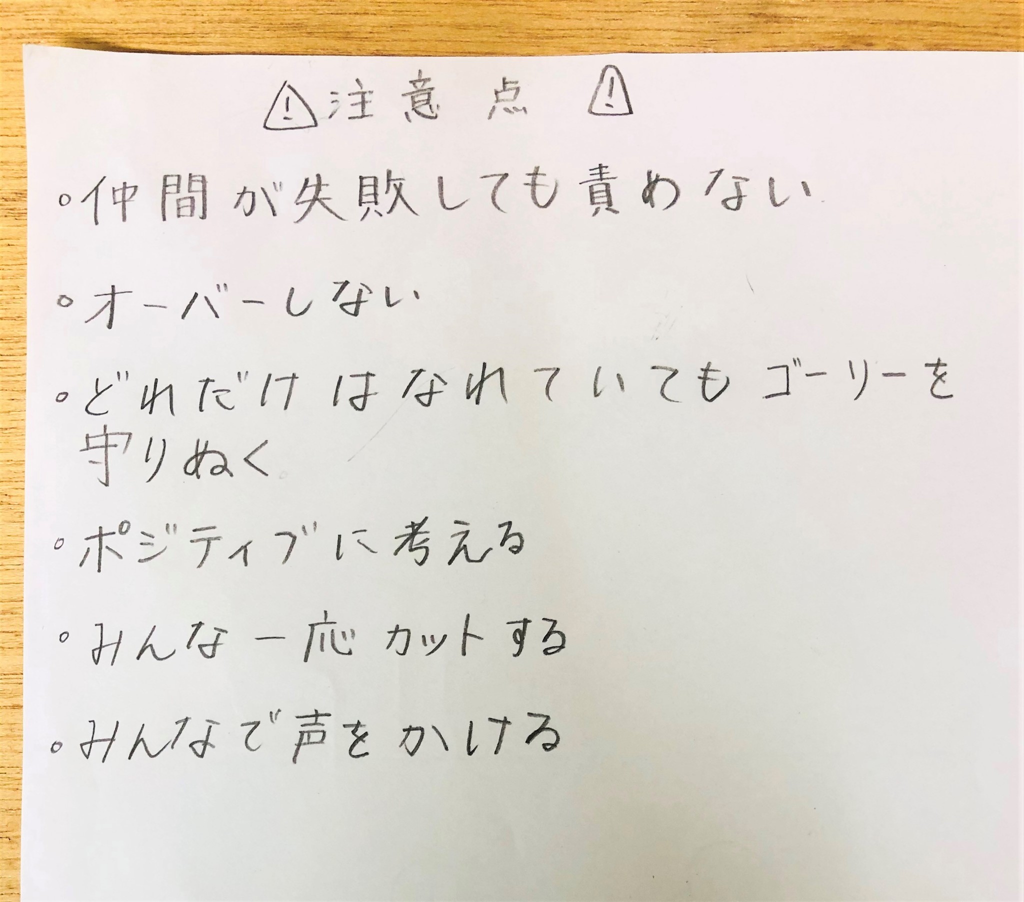 そこには裏表に、相手チームに勝つための作戦と、チーム内での注意点が記されていました。大規模であろうが小規模であろうが、子どもたちにとっては1度しかない「絶対に負けられない戦い」。そこにかける熱い思いと向上心が、ひしひしと伝わってきたそうです。