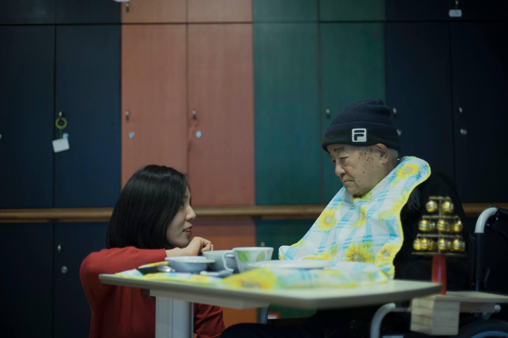 演劇から一旦離れていた申さんが演劇を再び始めるきっかけとなったのが、岡田忠雄さん(94)との出会いでした。 岡田さんは「おかじい」の愛称で親しまれる、老いと演劇「OiBokkeShi」の看板俳優です。 申さんは「OiBokkeShi」の劇団主宰者である菅原直樹さんに声をかけられ、おかじいと一緒に演劇をする機会に恵まれます。