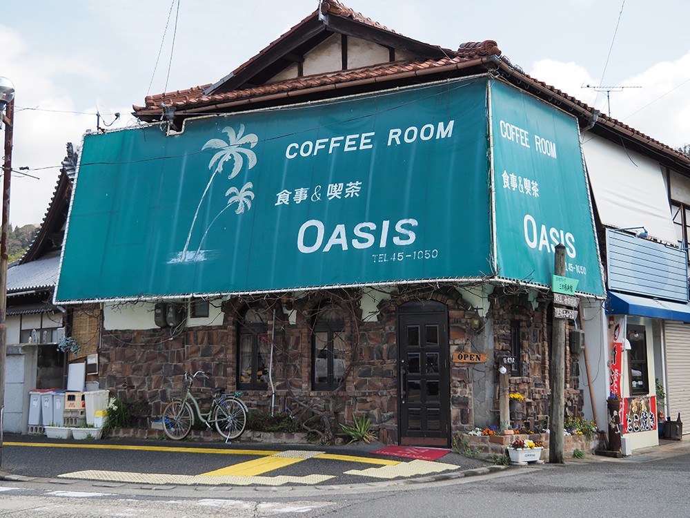 レンガ造りがレトロな喫茶店「オアシス」は、レンガの倉庫だった建物です。かつて安芸津町では、赤土を原料としたレンガ造りが盛んでした。