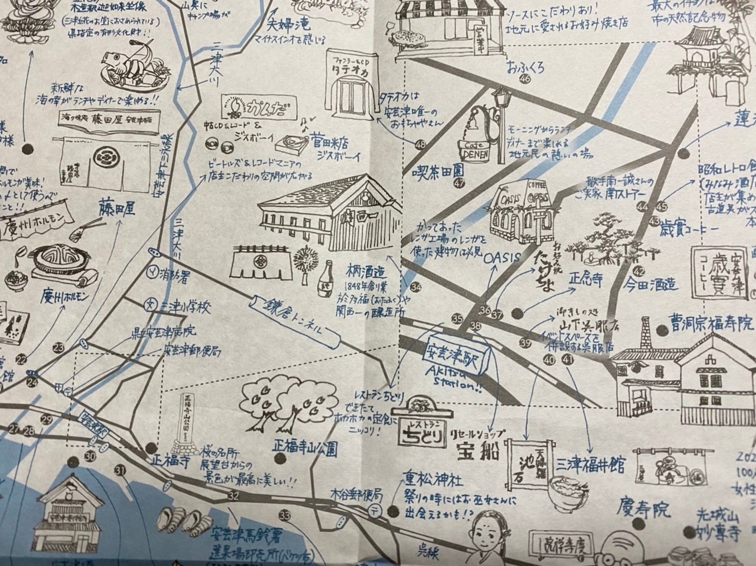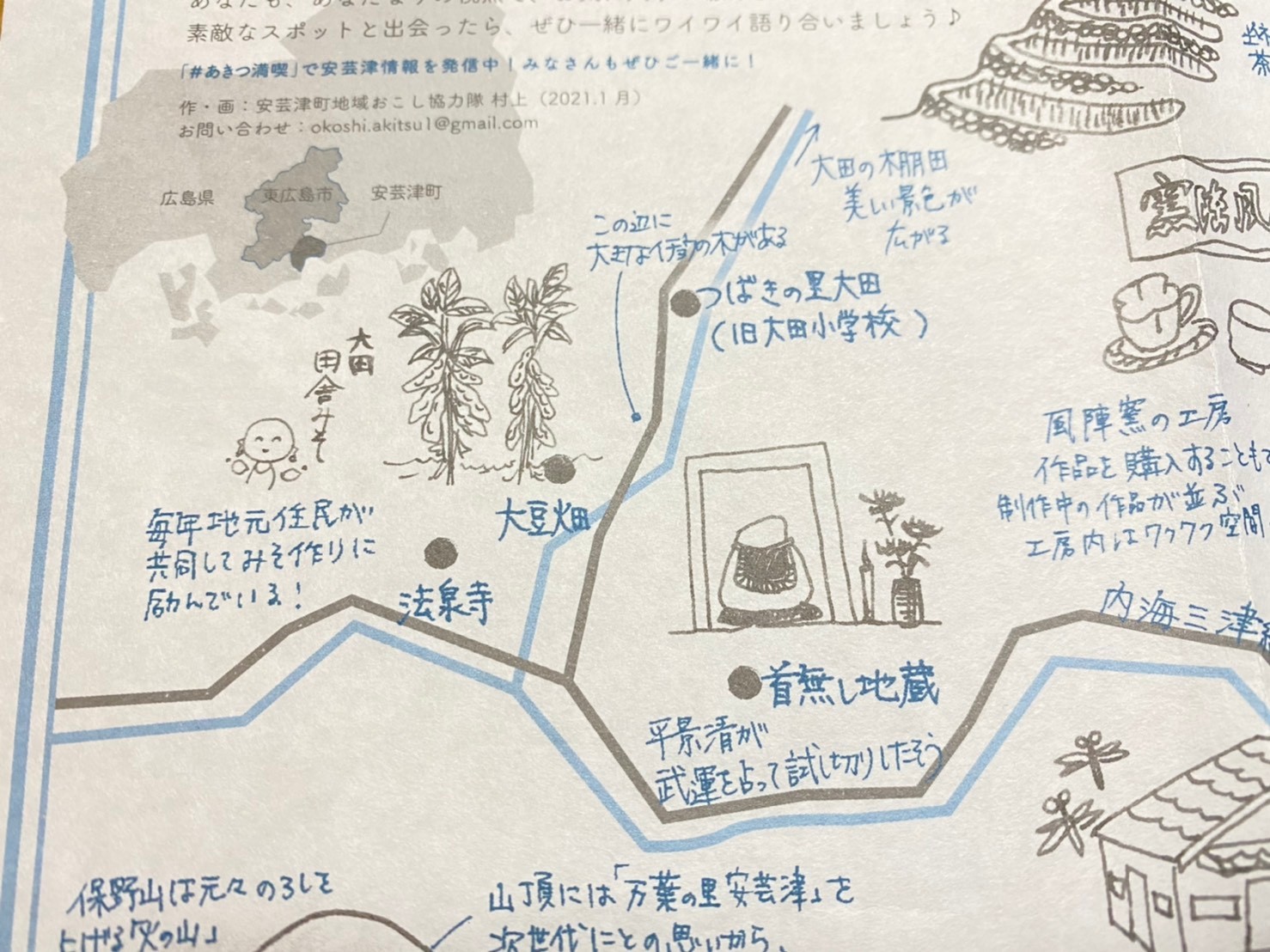 手描きのイラストと文字がぎっしり!安芸津満喫探訪MAP