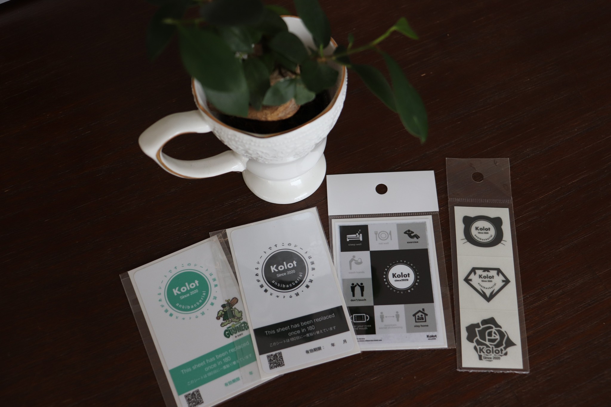それが、抗菌・消臭シートの開発でした。丸亀市のデザイン会社と共同開発した「kolot(コロット)」です。空気清浄ラミネートを使用した抗菌シートで、窓ガラスや冷蔵庫、トイレ車内などに貼るだけで抗菌・消臭してくれるというもの。抗菌や消臭に関しての性能評価試験もクリアし、効果はデータに裏付けられています。