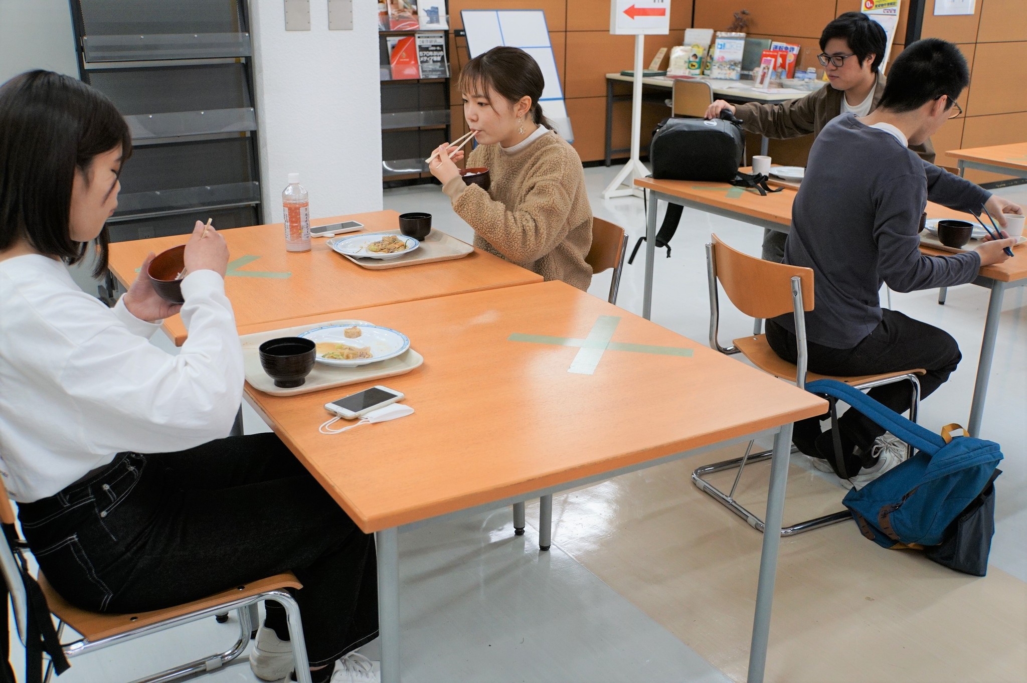 岡山商科大学では、増えた学生が食堂で密にならないよう、多目的ルームを新たに食事スペースとして開放したり、ピーク時は職員が誘導(入場制限)を行ったりするなど、感染防止対策にも配慮しているということです。
