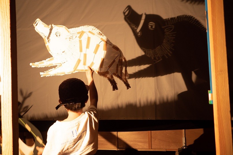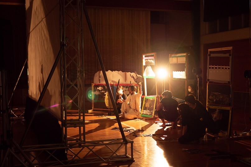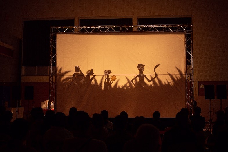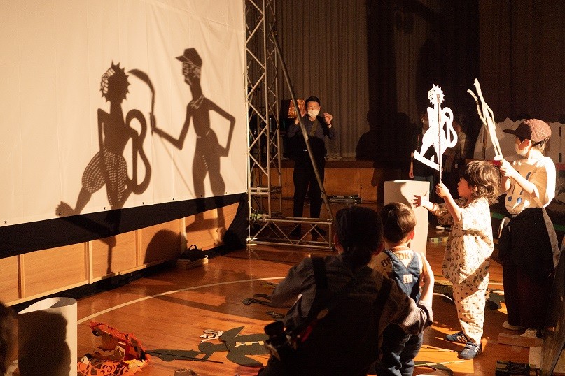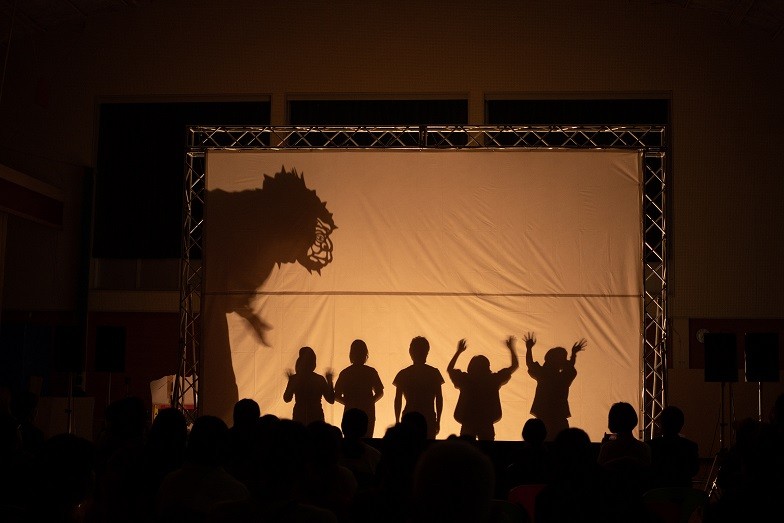 上演では川村さんだけでなく、福武財団のスタッフや福田地区の住民が影絵を操った。そして今回は、クラウドファンディングで出演権を得た、神奈川からの参加者も登場した。
