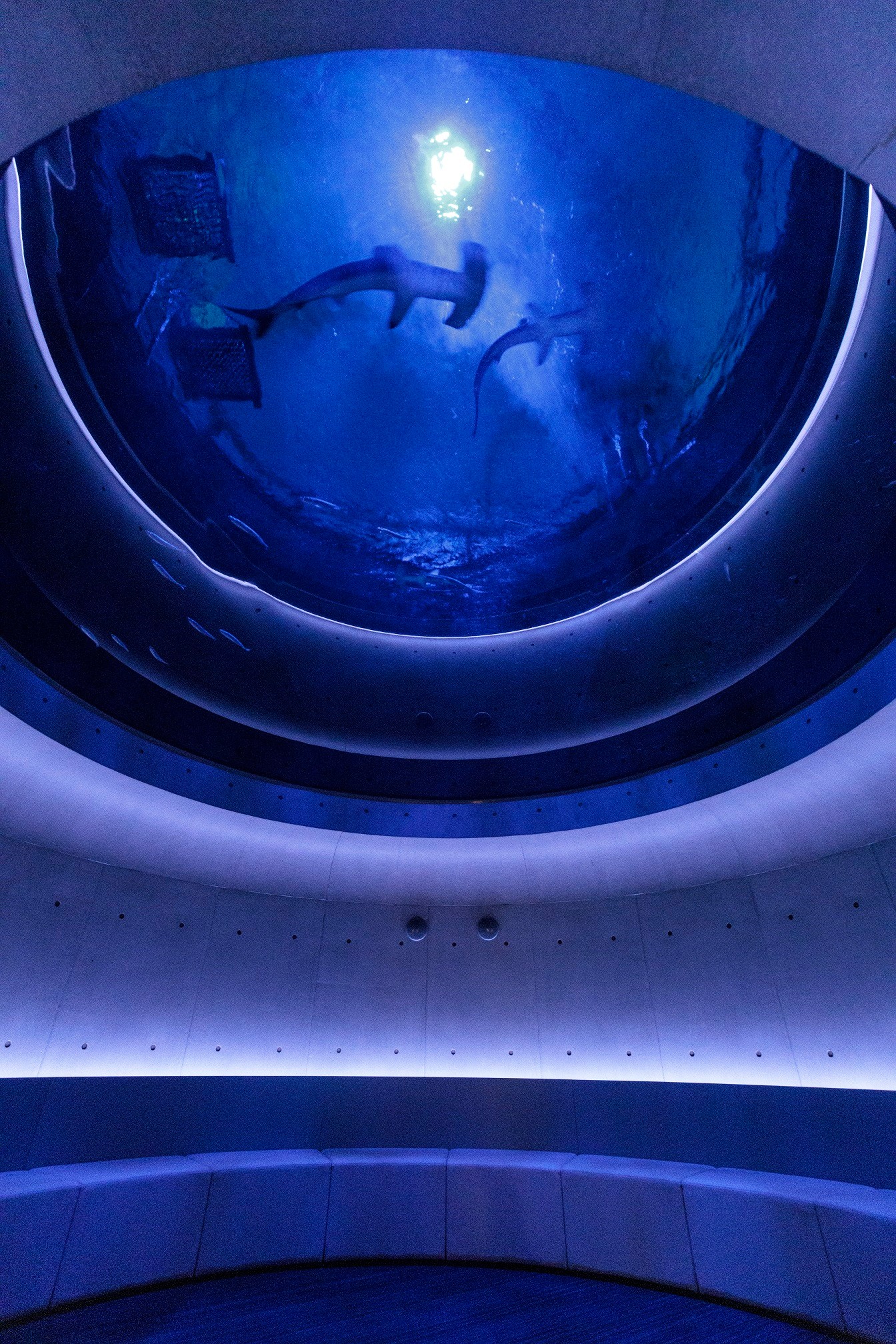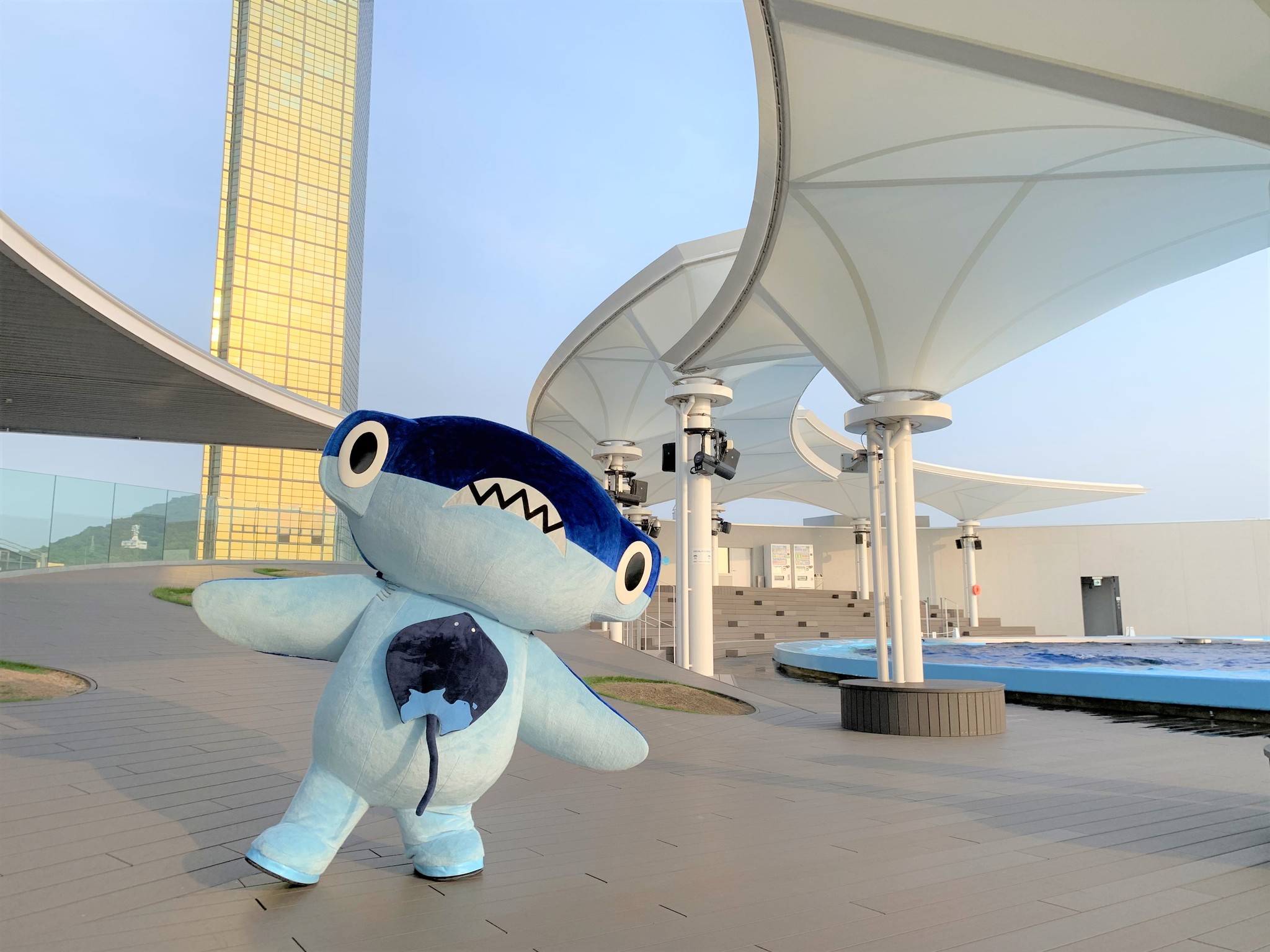 2020年6月にオープンした四国水族館。子どもだけでなく、「大人も楽しめる」をテーマの1つにしていて、光の演出や、学術的な要素を盛り込むことにも力を入れています。名物スポットの1つで、水槽を下から見上げる「神無月の景」から見ることができるのが、シュモクザメ。しゅこくんのモデルになりました。