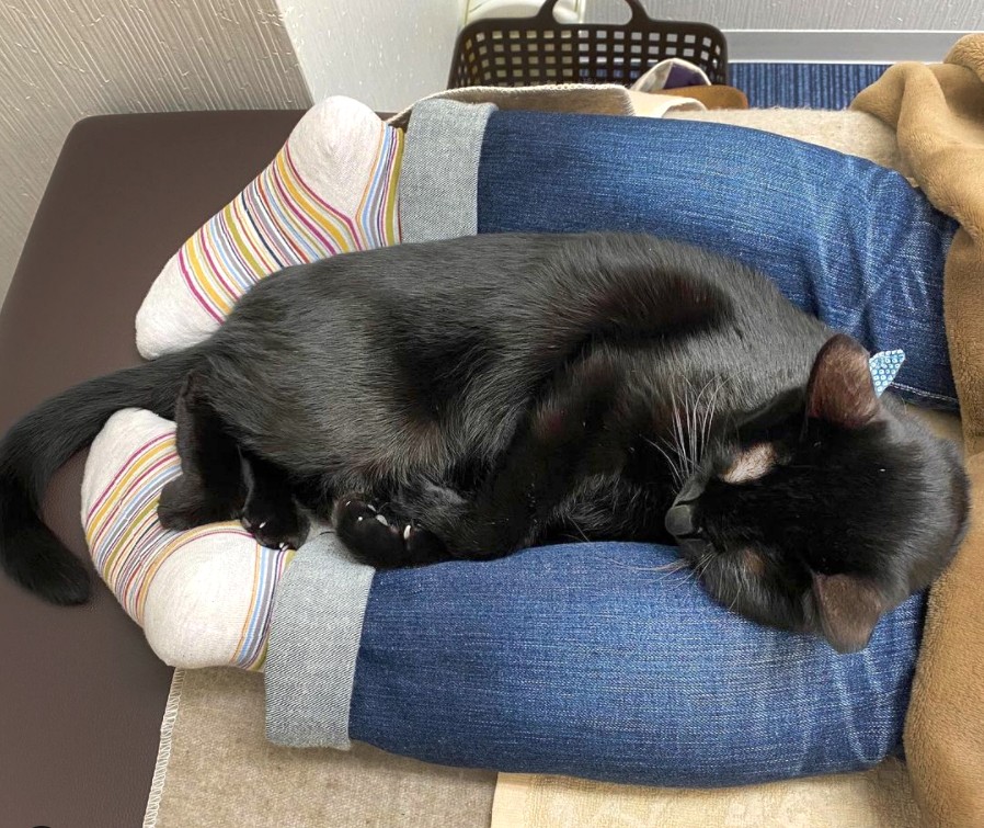 「あんちゃん(あんこ院長の愛称)が添い寝をする可能性が高いのは、鍼治療でうつ伏せ寝状態の時。『きょうはいっしょに寝てくれた~』という声も上がります」