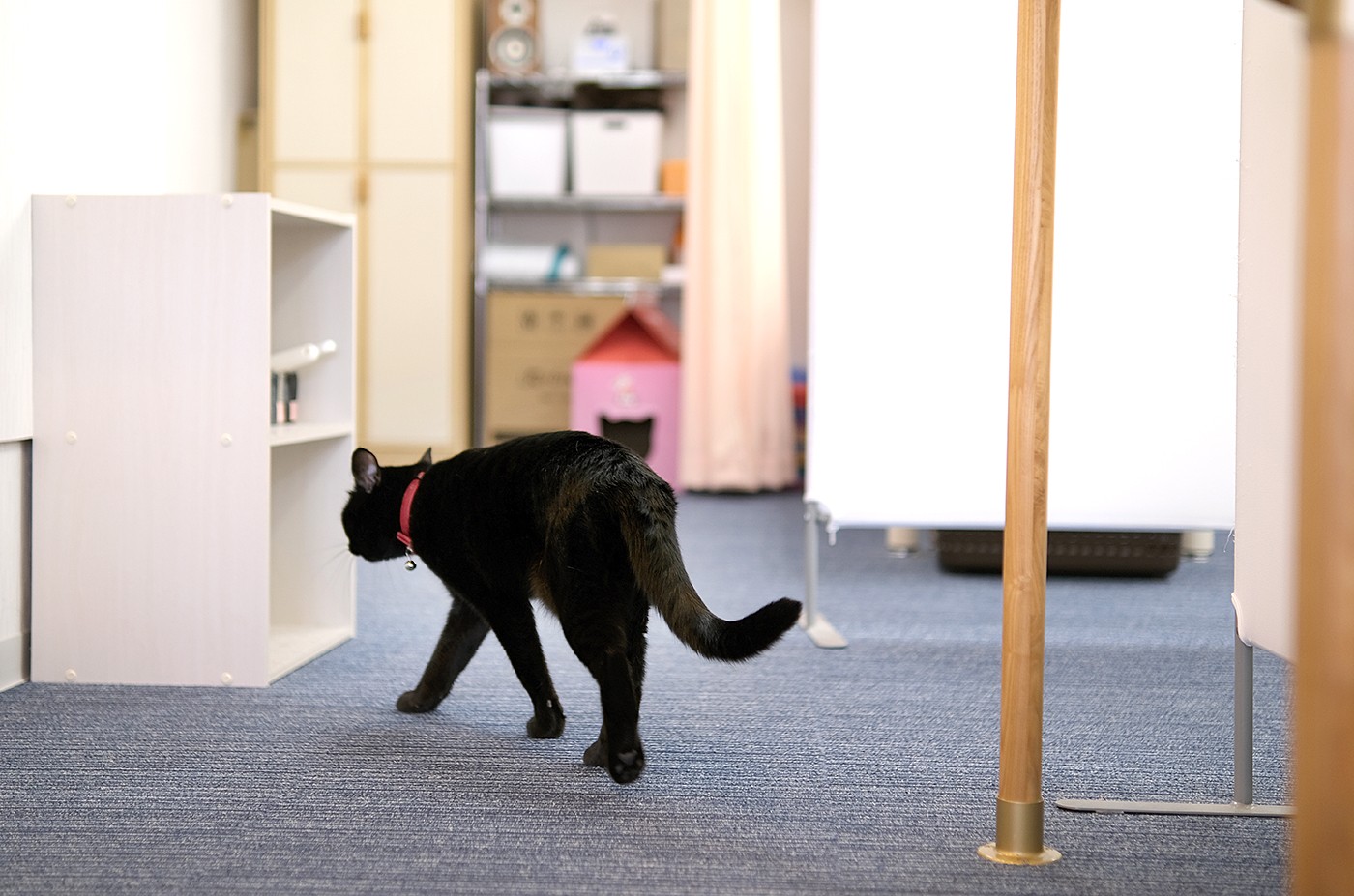 添い寝業務を遂行するかは「気分によって」。猫院長の本領発揮です。猫が苦手な人のときは「別室で待機」も対応可能です。