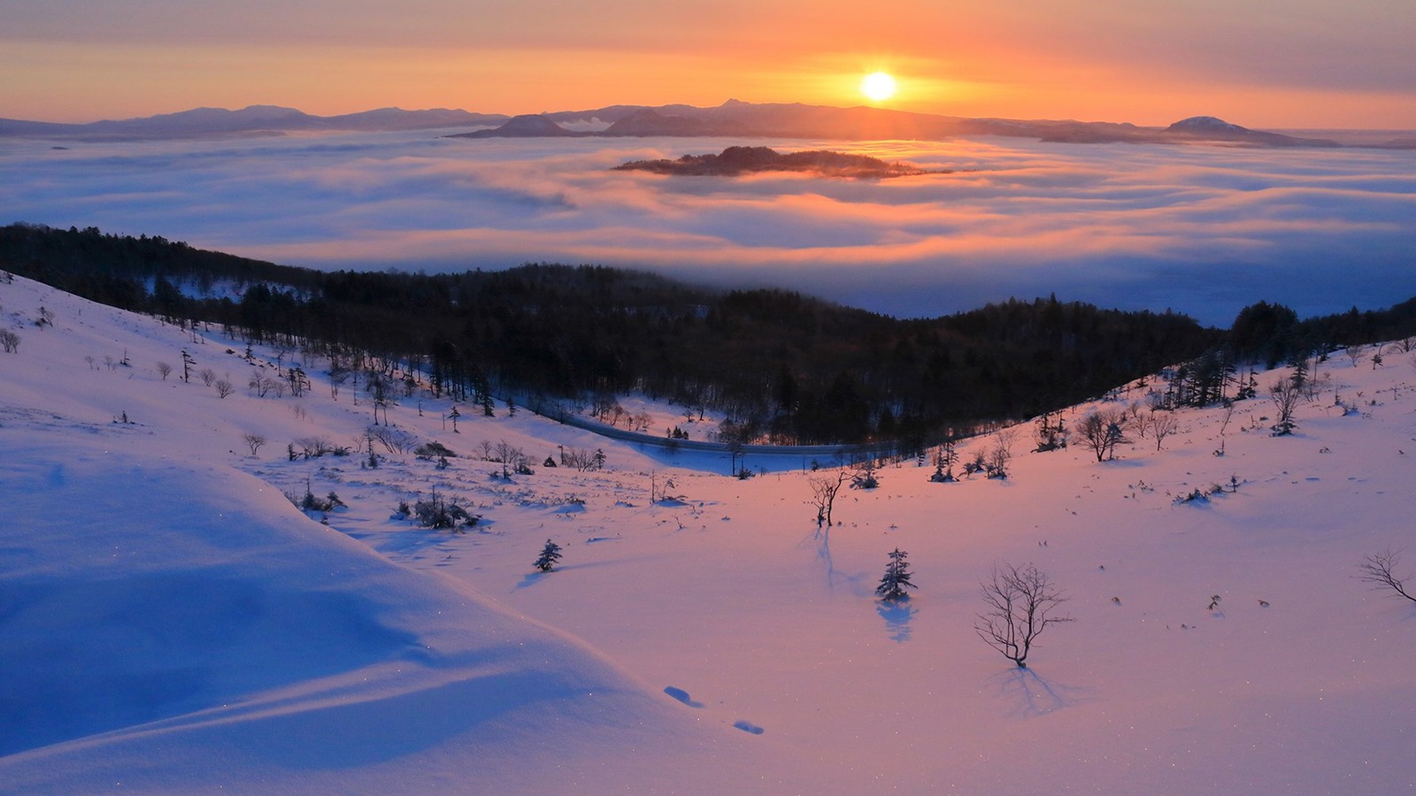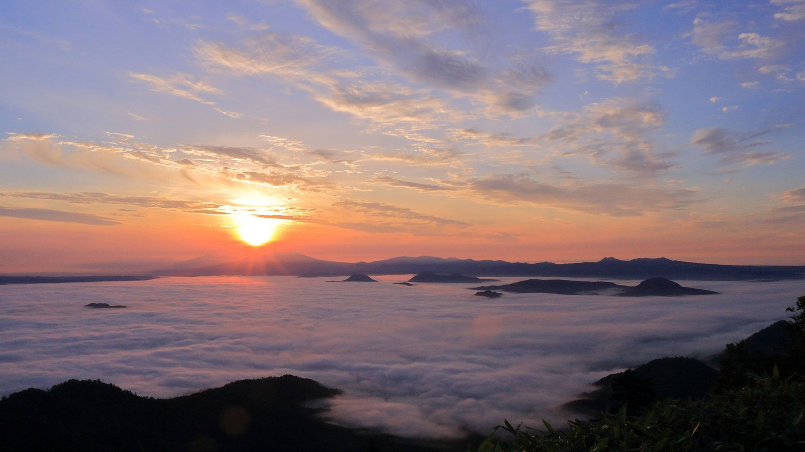 北海道の東・弟子屈町にある、日本最大のカルデラ湖・屈斜路湖(くっしゃろこ)。寒暖の差が激しいため、湖や森から揮発した水蒸気が霧となり、雲海が発生しやすい場所の1つです。外輪山からは雲海が広がる様子が一望でき、多くの訪問客が魅了されています。