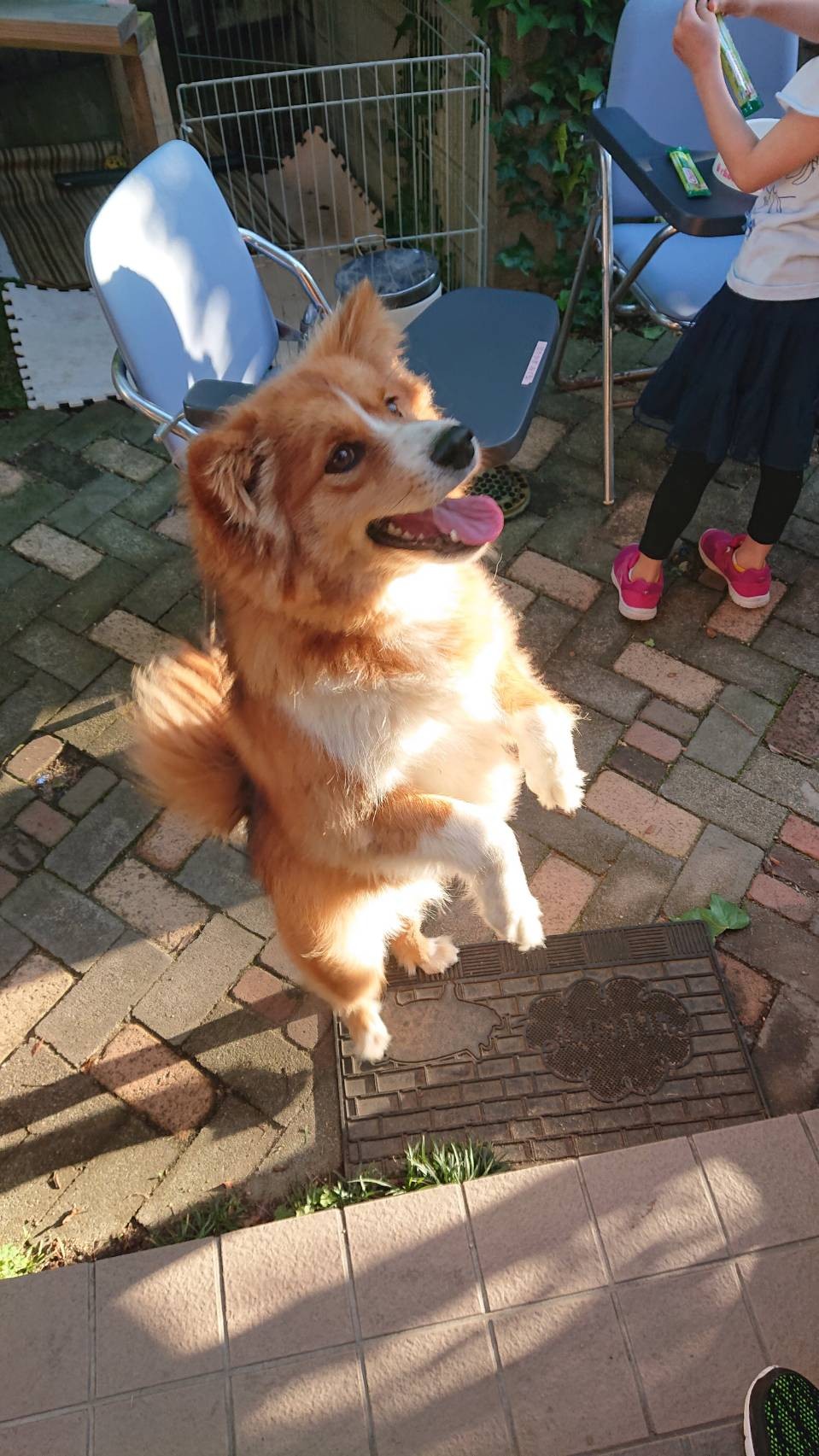 子どもが好きなので、子どもを見るとしっぽをふって寄っていきます。私の孫が4人とも女の子のせいか、女の子は特に好きです。よくついていっています。遊んでくれると思っているのかもしれないですね。