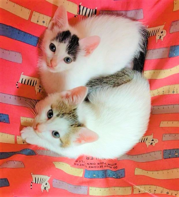 会社の同僚が子猫を保護して、飼い主を探していました。その人たち(同僚と同僚の母)は、既に猫を4匹飼っているので、「さらに2匹というのは飼えないな」というので、誰か飼える人を探すことになったそうです。
