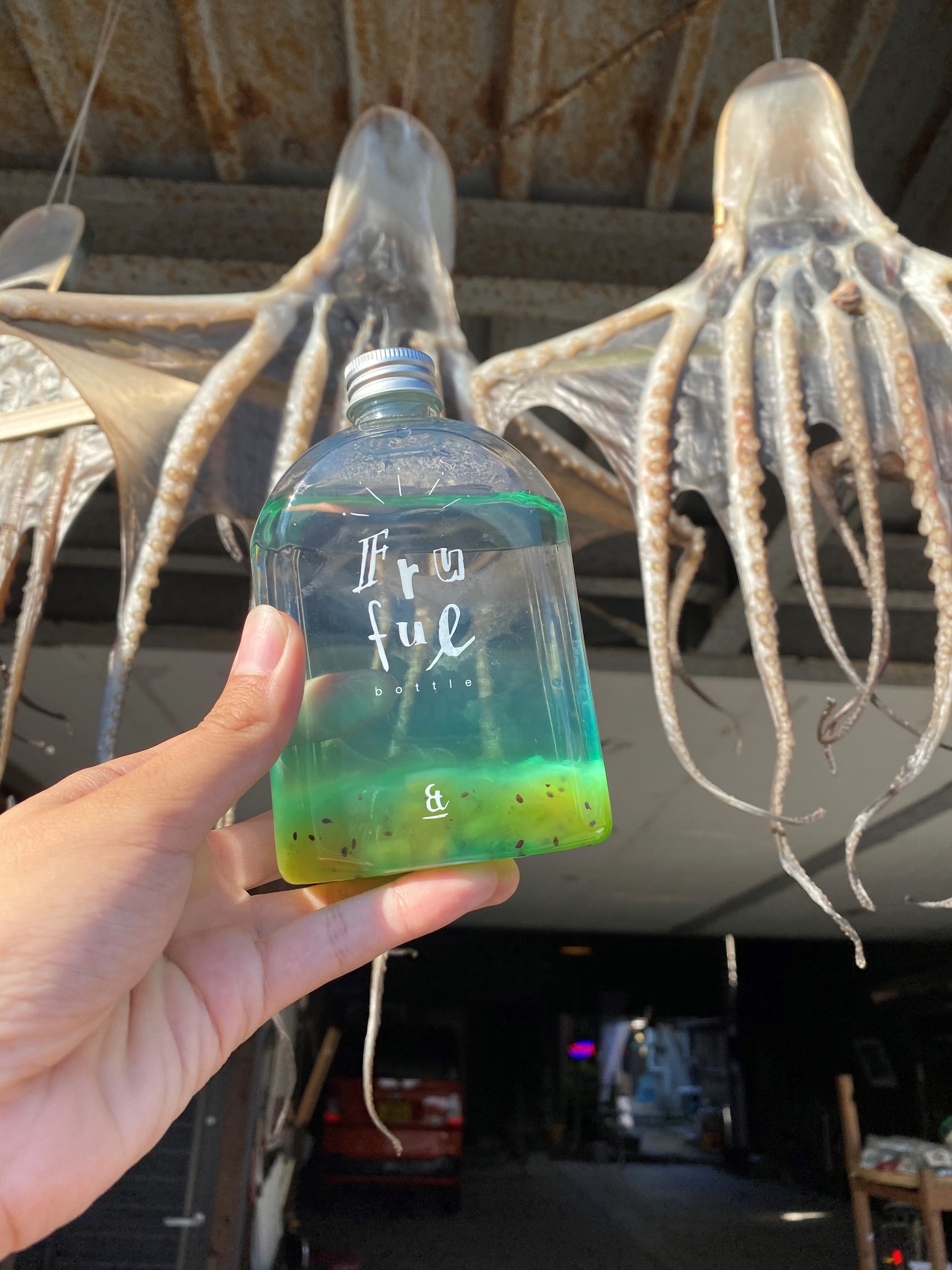 透明なものなので、光に透かしたり水に映したり。雨の日も水たまりに映せるのでチャンスですよ。また、昼のボトルと夜のボトルでは写し方が変わって面白いなと思います。