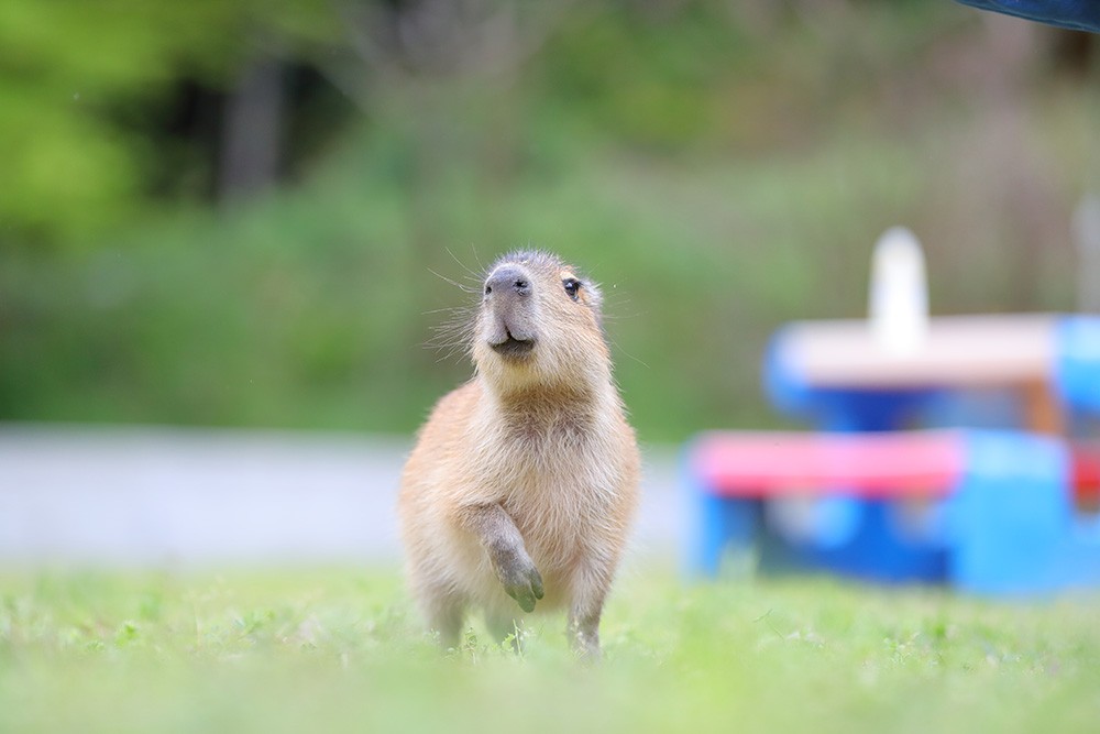 モットーは「カピバラの気持ちになって」。カピバラの視点でとらえられた写真は愛らしさに満ちており、見る人をほっこりとした気持ちにさせてくれます。