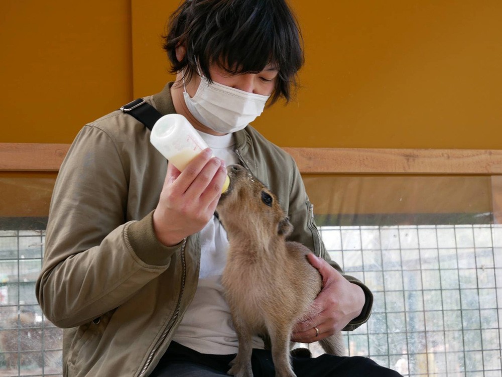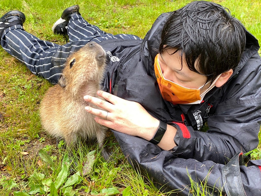 吉田さんとバジルちゃんの出会いは、2021年3月。しろとり動物園で開催された「カピバラ赤ちゃんのミルクやり体験」に夫婦で参加した時のことでした。