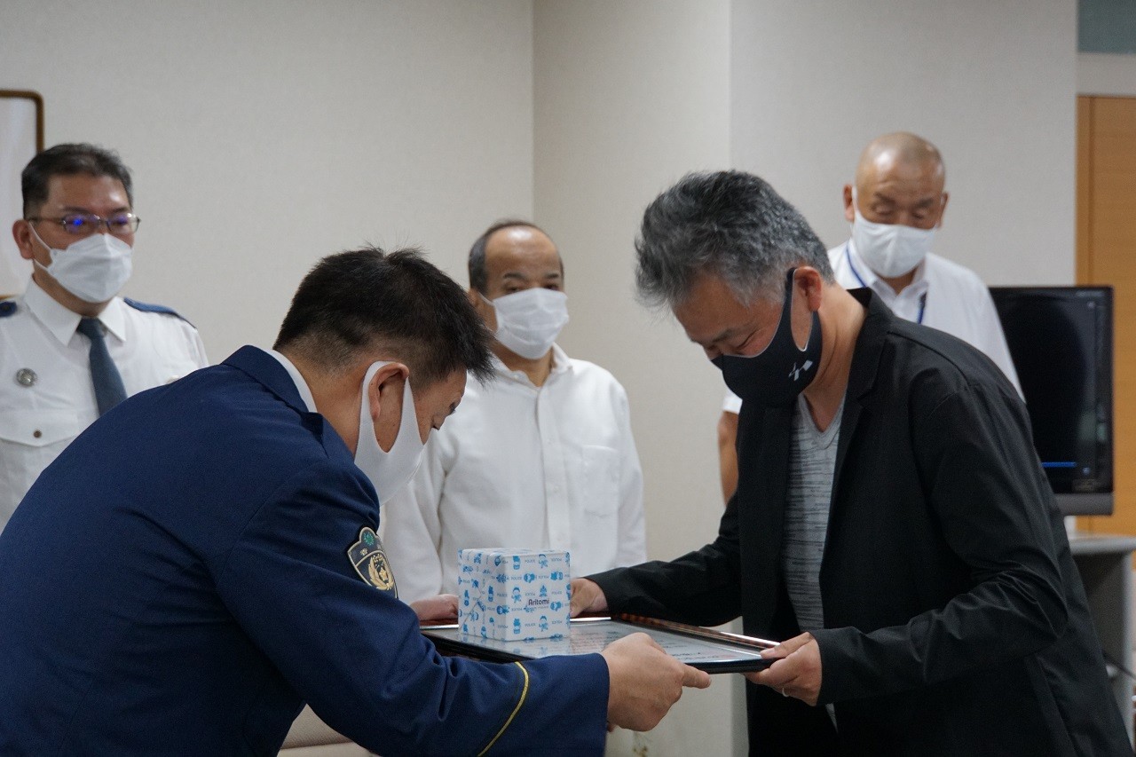 特殊詐欺防止の動画を制作し被害防止を効果的に啓発したとして、動画制作者の山田英基さんに高松北警察署より感謝状が贈られました。