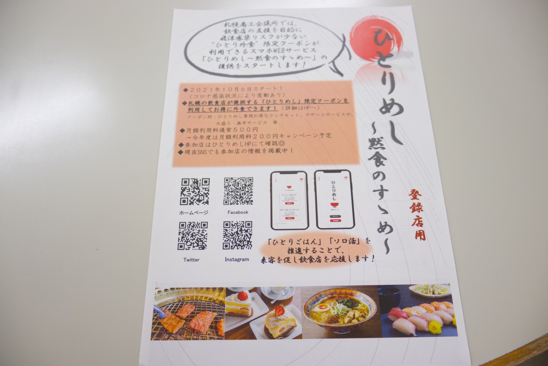 そんな中、苦境に立たされている札幌の飲食店を救いたいという思いから、飛沫感染のリスクが少ないとされる1人での外食を推進するプロジェクト「ひとりめし」に携わります。
