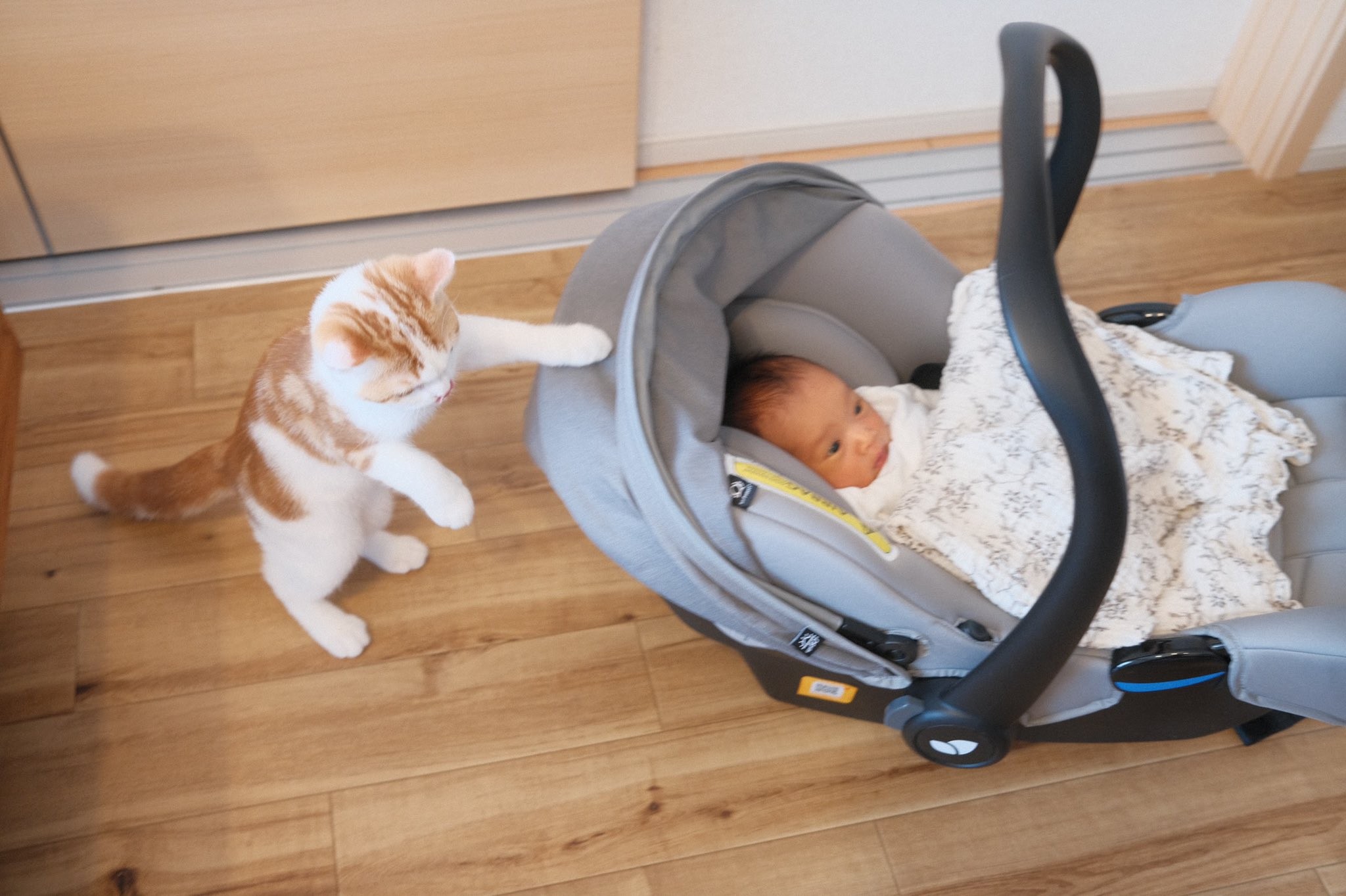 赤ちゃんと実際に対面するまでは「赤ちゃんが怪我をしてしまったらどうしよう、逆に、こなつがストレスを感じたらどうしよう」と心配でしたが、不思議と赤ちゃんには全く爪を立てたり噛んだりもせず、大事そうにそっと触っている様子で、とても温かい気持ちになりました。