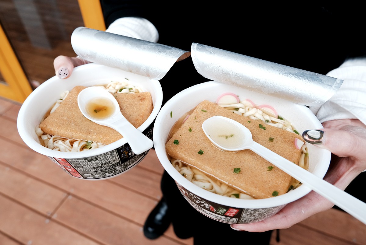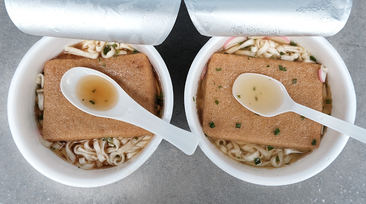 しかし11月1日から期間限定で、全国のスーパーやコンビニなどで販売しています。「きつねうどん」「天ぷらそば」の東西向け4品の新しいパッケージには大きく「東」「西」と描かれています。