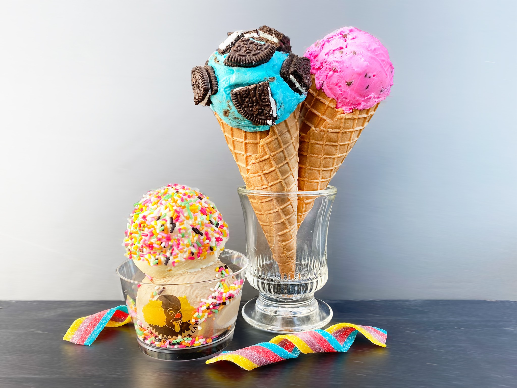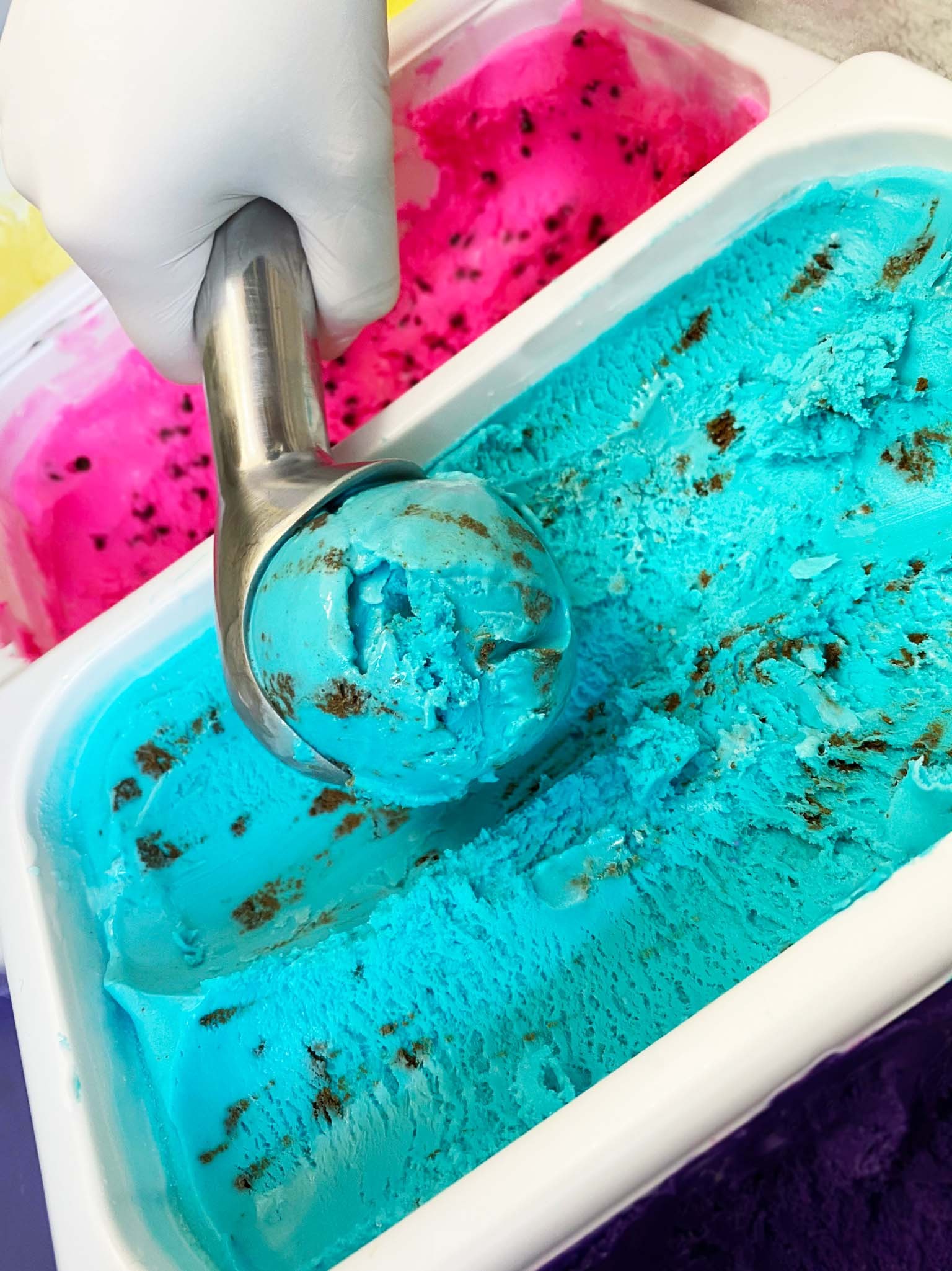 「Stay hungry. Stay crazy.」をモットーに、例えばバニラ味のアイスクリームにしても白やアイボリーと決めてしまうのではなく、その時々で流行している色や季節を表す色、人気の色に置き換えて、買ってくださったお客様にアイスクリームの常識を覆す見た目の楽しさを提供したいという思いがあります。もちろん味にもこだわっていて北海道産の新鮮な牛乳をふんだん使用しています。
