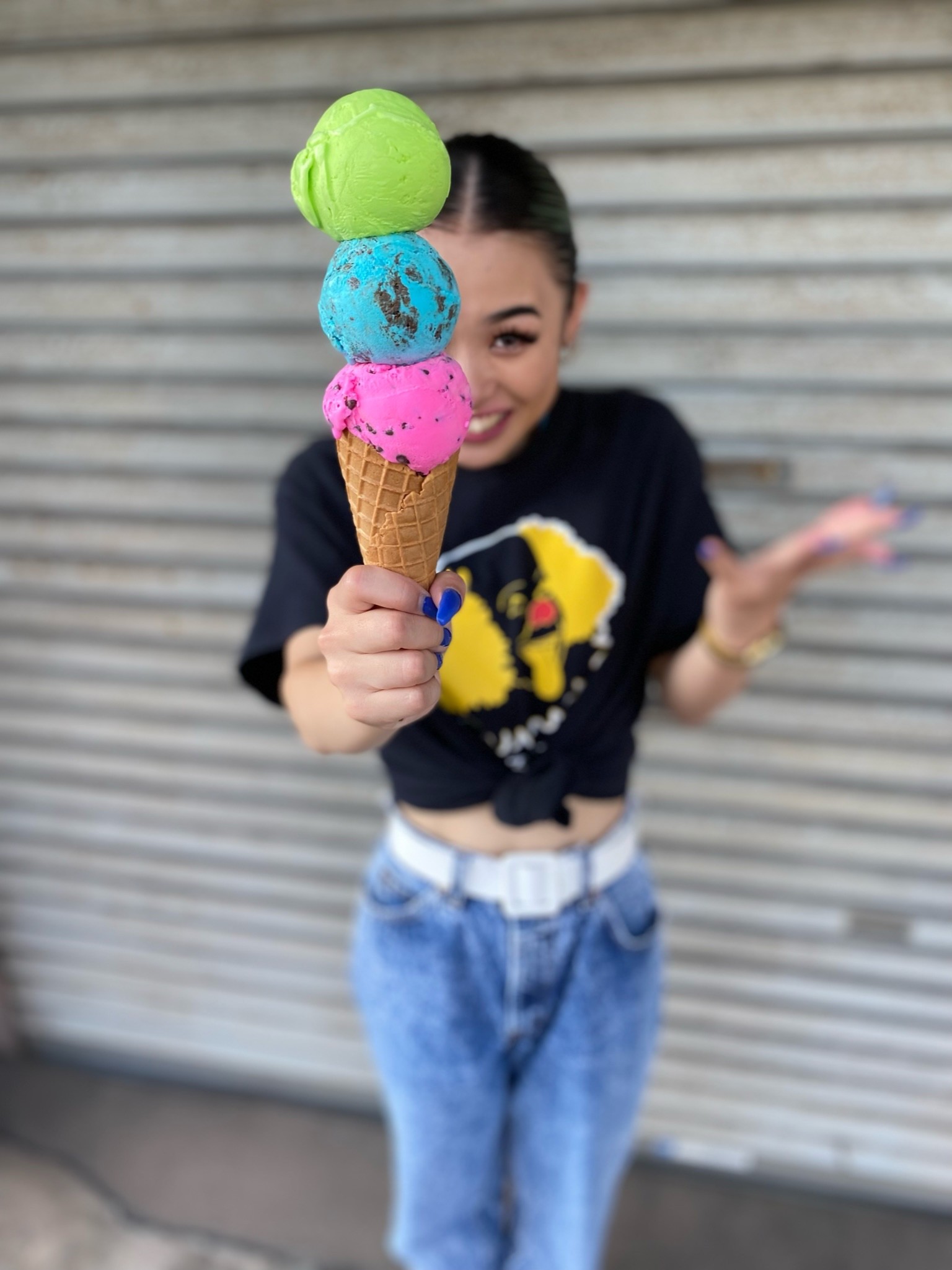 アイスクリーム自体がとても映えているので、あえて背景をシンプルにしたり、店舗の中の装飾とあわせて撮っていただいても、とても面白いと思います。