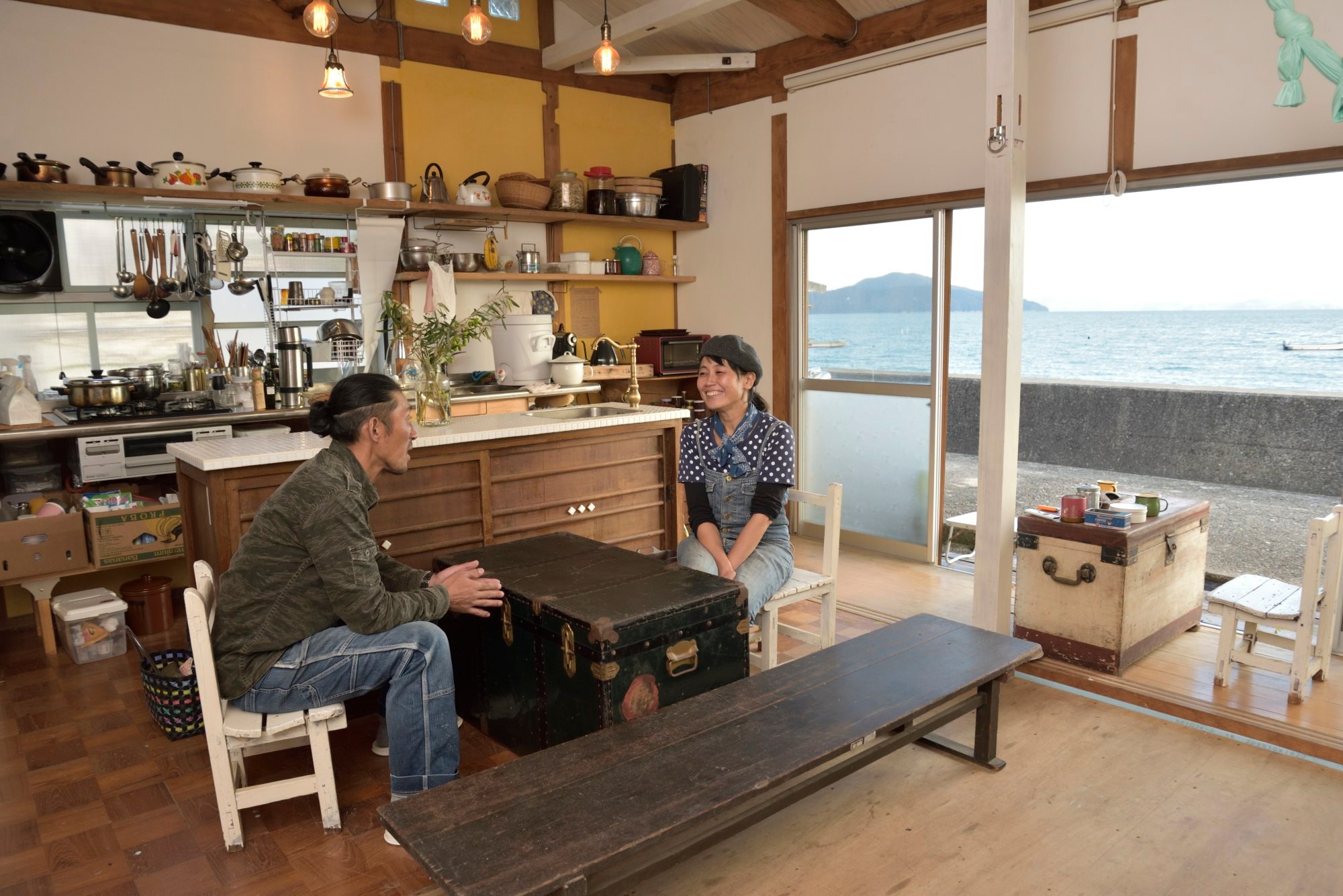 目の前に瀬戸内海が広がり、ときおり小さな魚船が水面に線を描くように通っていく。青空にはトンビやカモメが舞い、遠くでその鳴き声が聞こえてくる。まるで別荘地のようなロケーションに建つコンパクトな平屋を、運よくマイホームにすることができ、少しずつ自分たちでリフォームを続けています。