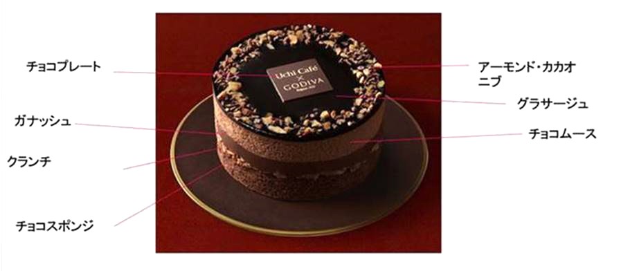 「プティ ノエルショコラ」は、クリスマスの予約商品であるホールケーキを、ミニサイズに変化させたものです。チョコスポンジ、クランチ、ガナッシュ、チョコムース、グラサージュといった、さまざまな異なるチョコレートの食感を味わうことができます。また、サクサクした食感のクランチチョコ、カカオニブやナッツがアクセントとして効いています。