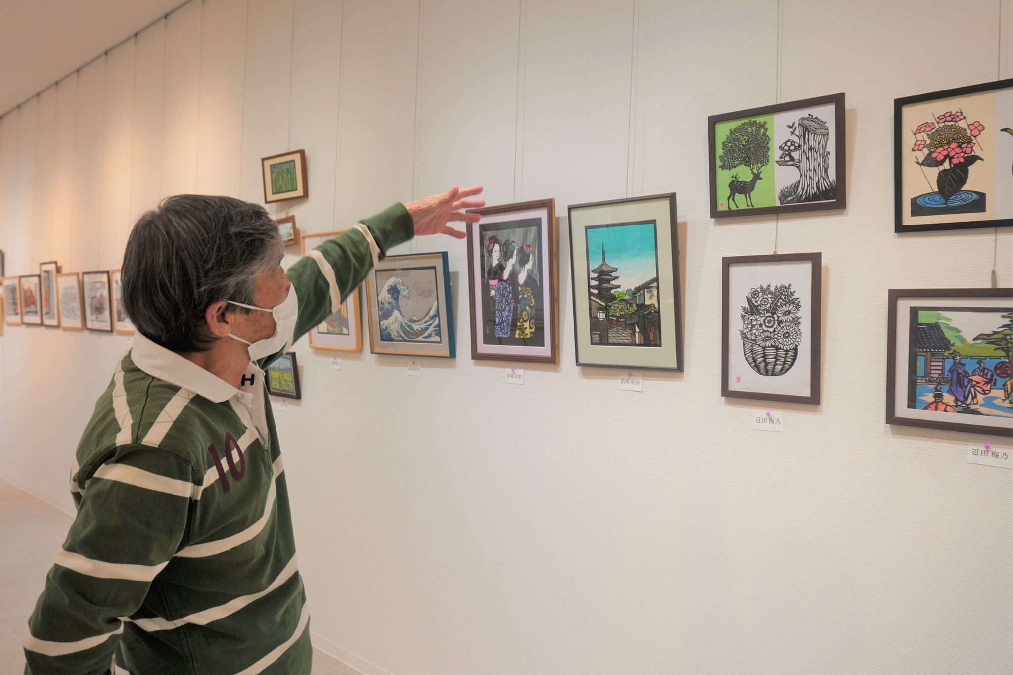 展示会で一緒に作品を見てまわっていると、一人一人の作品のエピソードをする熱心に話す豊岡さん。その姿からは、およそ70代とは思えない熱量を感じました。確かに作品を見ると、それぞれモチーフの選定や色使い、細かさなど個性的な作品ばかりです。紙風船の切り絵に実際の紙風船を貼るなど遊び心のある作品もあり、楽しんで制作している様子がうかがえます。