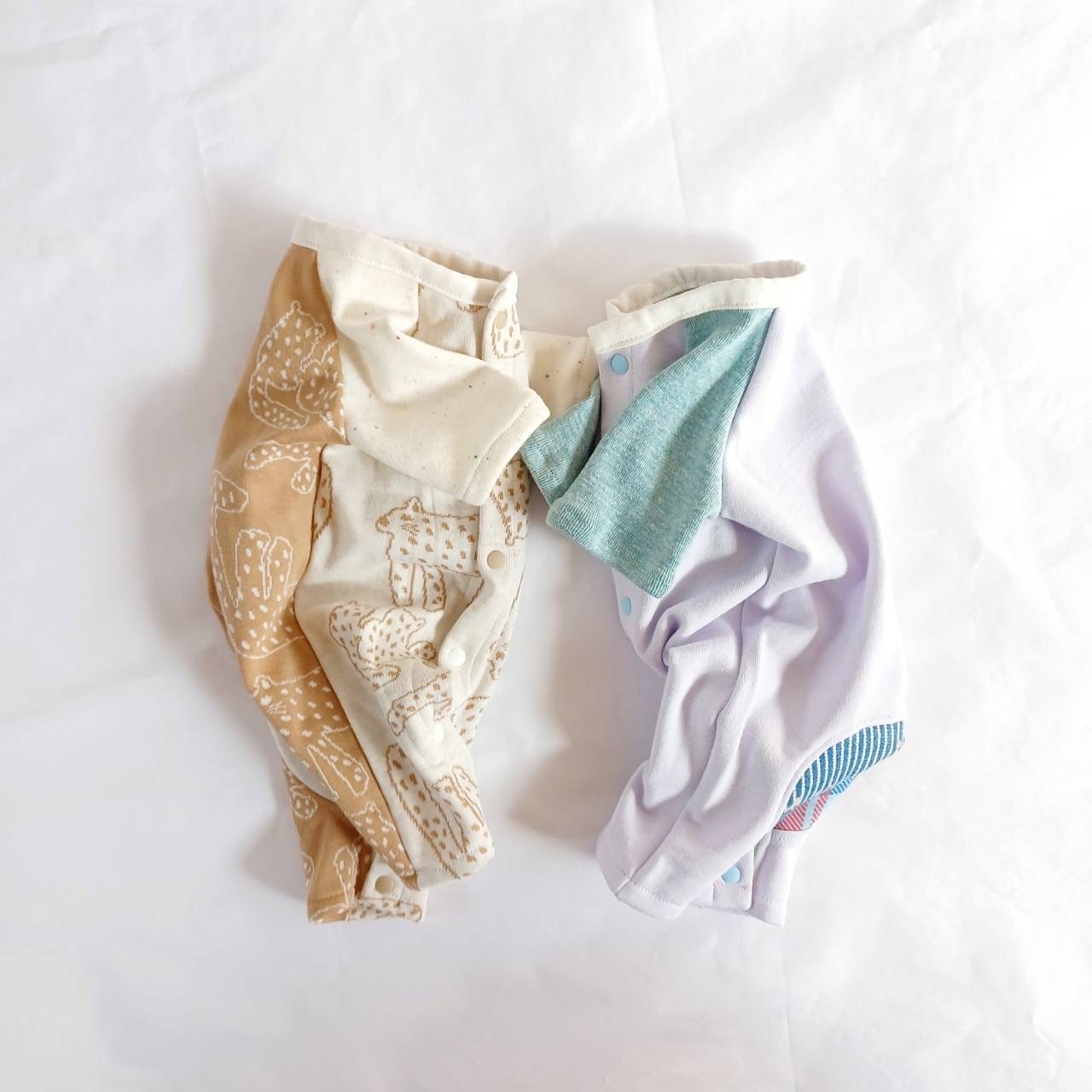 新生児用カバーオールの小さめサイズを作ろうと思ったのは、ワタナベさんが子どもに着せた市販のカバーオールがブカブカだったから。ちょうどいいサイズを着せてあげたいという思いから作り始め、ネットでも販売しました。それからしばらくして、出店している「ミンネ」にメッセージが届きました。