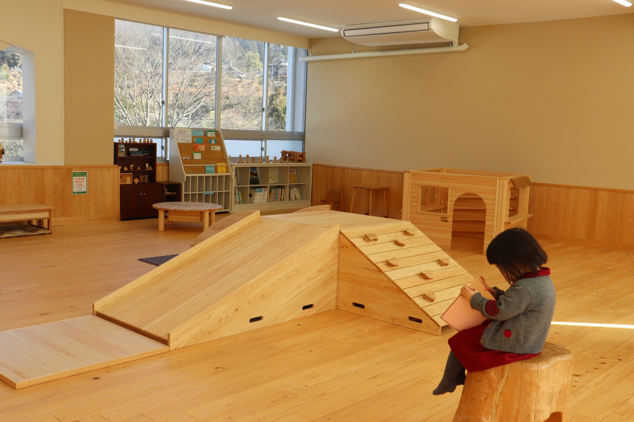 12月は、木と音楽が結びつくような演奏会をピアニストの方にお願いし、ヒノキに鈴をつけて楽器を作ったクリスマスイベントを開催しました。11月には、まんのう町の山で育ったヒノキの積み木を1万個使ってつみき大会をしたり、10月には、芸術士の方に依頼し、周辺の落ち葉を集めてアートを楽しんだり。子どもたちが木に触れながら楽しめるイベントを、さまざまな講師の方々と繋がりながら開催しています。
