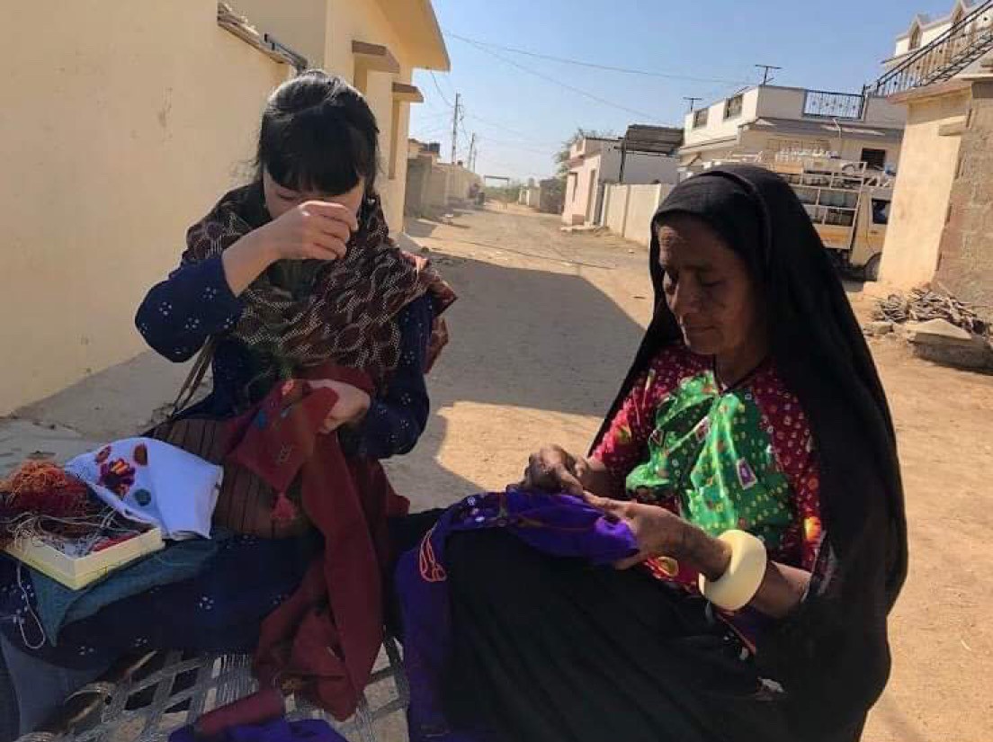 愛姫さんはカッチに1か月ほど滞在し、村をまわりながら刺繍を学んだ。なかにはとても貧しい村もあった。それでも人々は刺繍をし、誰かを思って針を進めていた。
