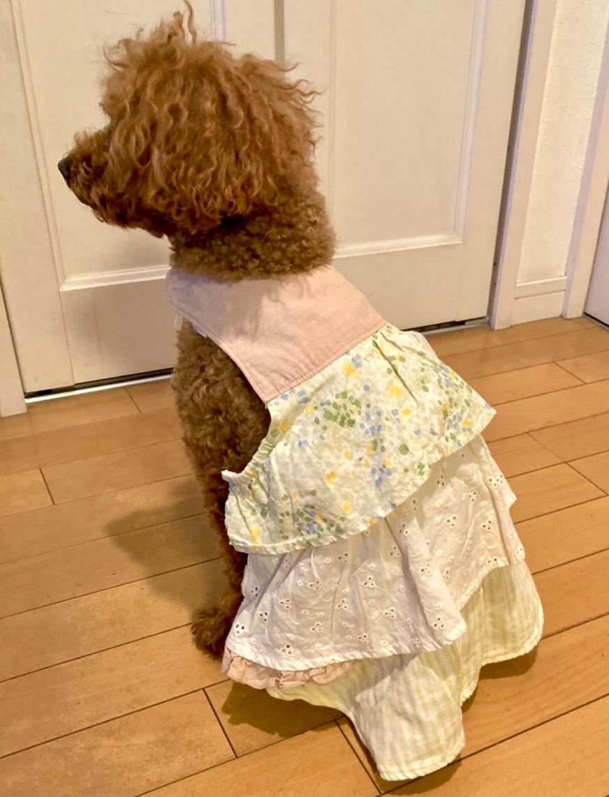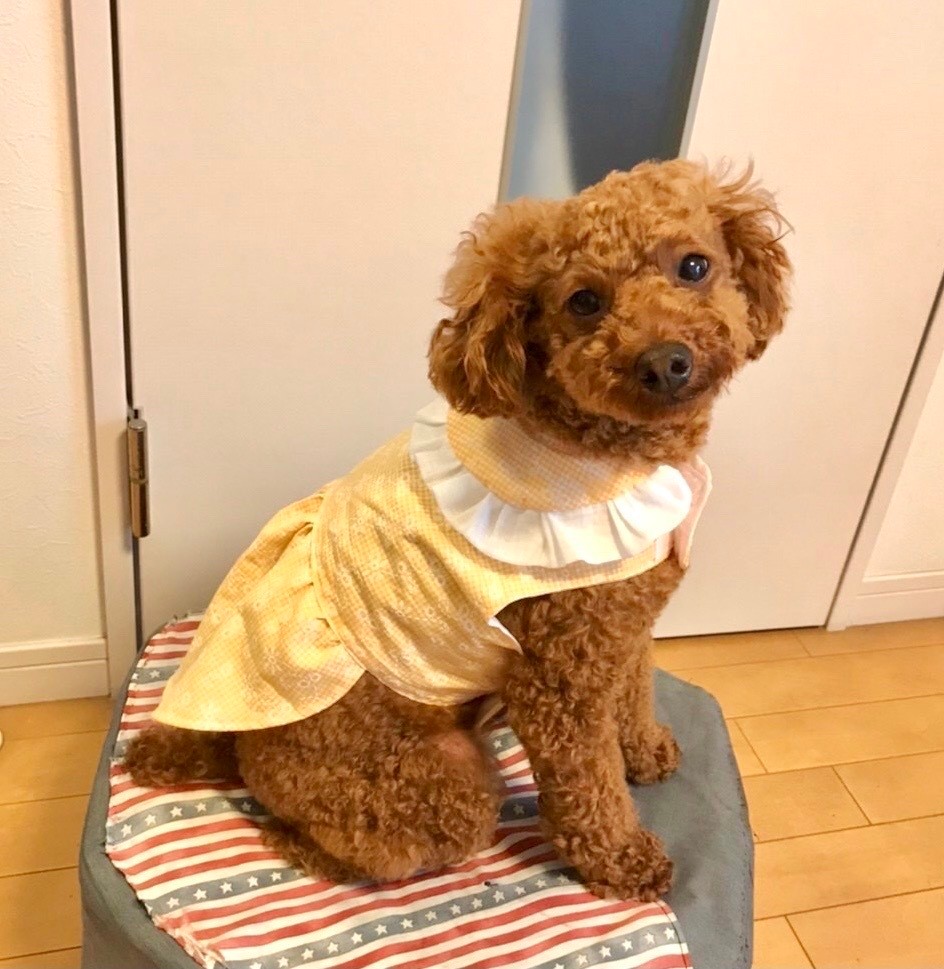 そう褒められて嬉しそうにしっぽを振るのはトイプードルのきなこちゃん。毎日身につけている洋服は飼い主の手作りで、そのほとんどが子ども服をリメイクして作られたものだ。愛犬のために服作りを始め、ドッグウェアのオンラインショップも開設するなど、愛犬とともに第二の人生を満喫する飼い主の寺田善好(てらだよしこ)さんに話を聞いた。