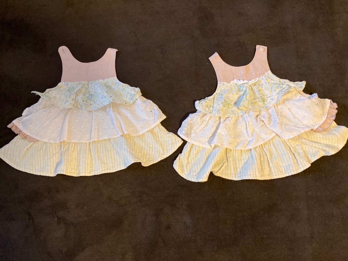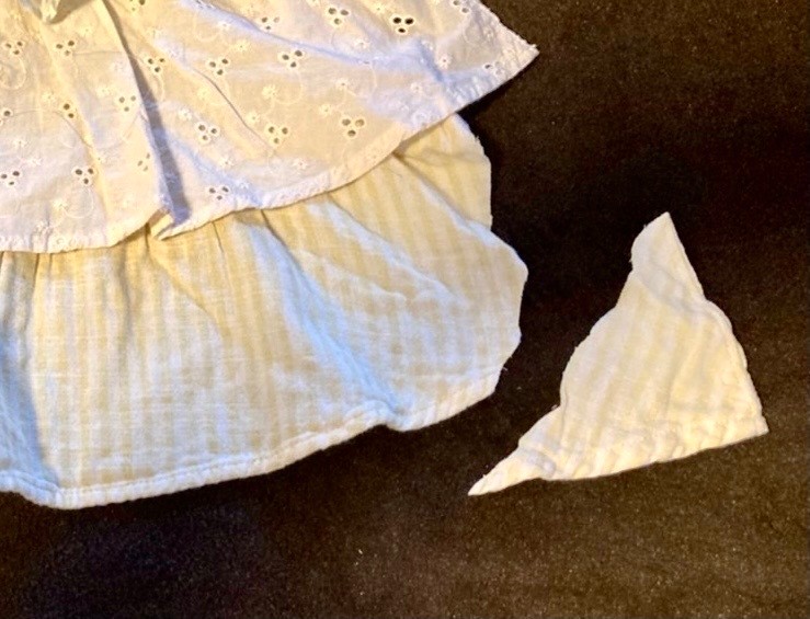 (1)ワンピースの正面と背面をわけるように半分に切る。
