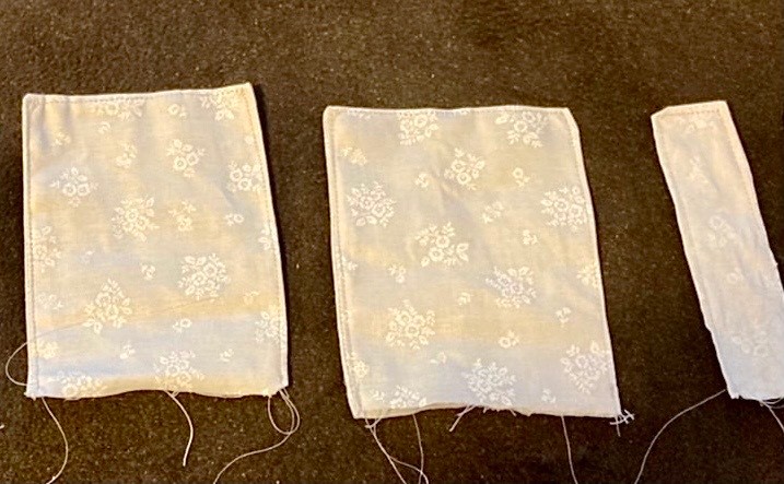 (3)胴回りの布(12cm×20cm)2枚、首回りの布(8cm×12cm)1枚を半分に折り、端をそろえて縫う。