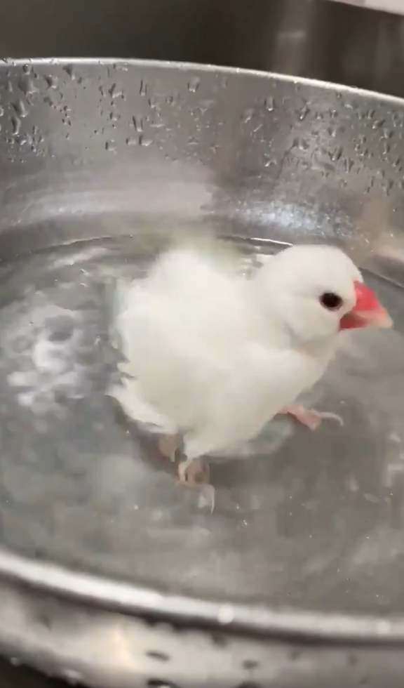 文鳥は、キレイ好きで、1日1回は、足から水に浸かりパタパタと羽を広げ、水浴びをするのが一般的です。多いと1日3回水浴びをする文鳥もいます。今、とある文鳥の水浴び写真が、Twitterで15.9万件以上のいいねをつけ、話題になっています。溺れているようにも見えるこの写真、実際にはただ水浴びをしているだけ。「え…茹でてる!?」「文鳥って、背泳ぎもできるんですね」「顔の向き、一瞬焦るよね〜」などのコメントが集まっていて、一瞬何が起こったのかと驚くユーザーが多いようです。