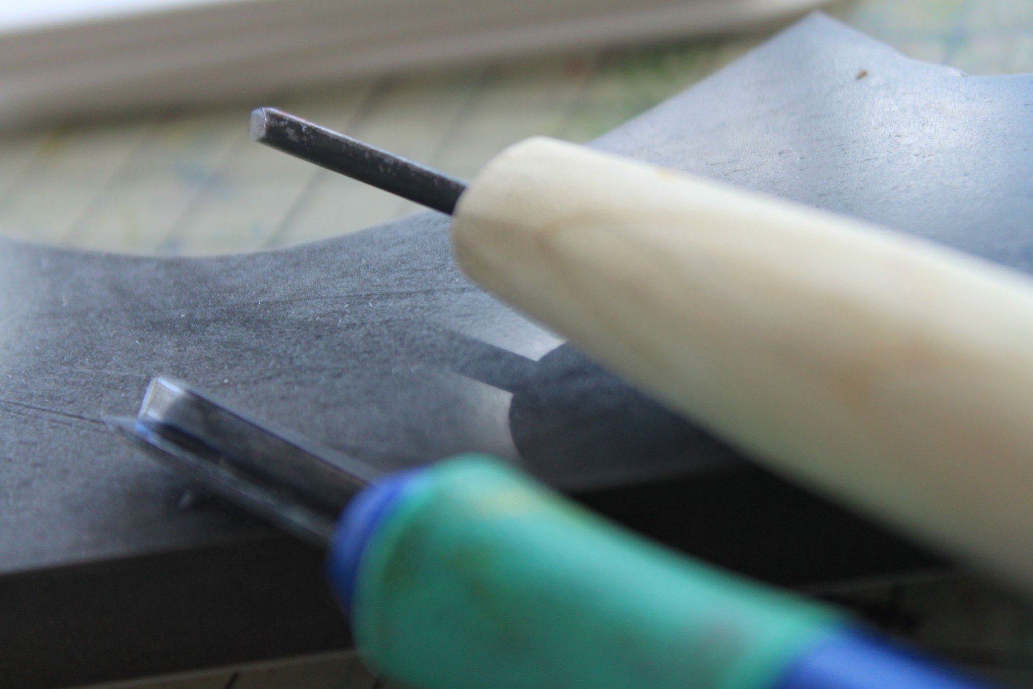 そしてぎゅーっと体重を乗せて紙に押し付けて……。