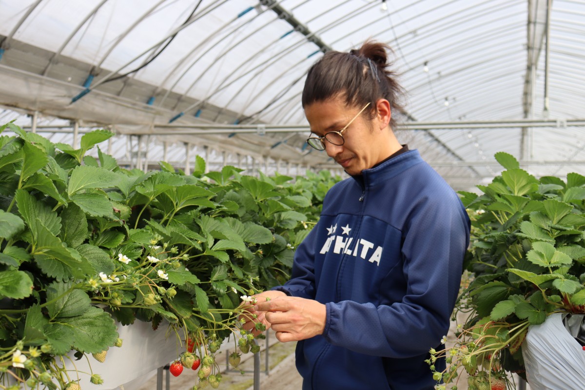「三木町に来る前は、大阪で仕事をしていました。ずっとブラジルでサッカーをしていただけに、太陽の下で体を動かしながら仕事がしたいと思っていました。いろいろと模索する中で、香川県のイチゴ栽培に出会い、師匠の佐々木さんに出会い、三木町でイチゴ農家になることを決めました」