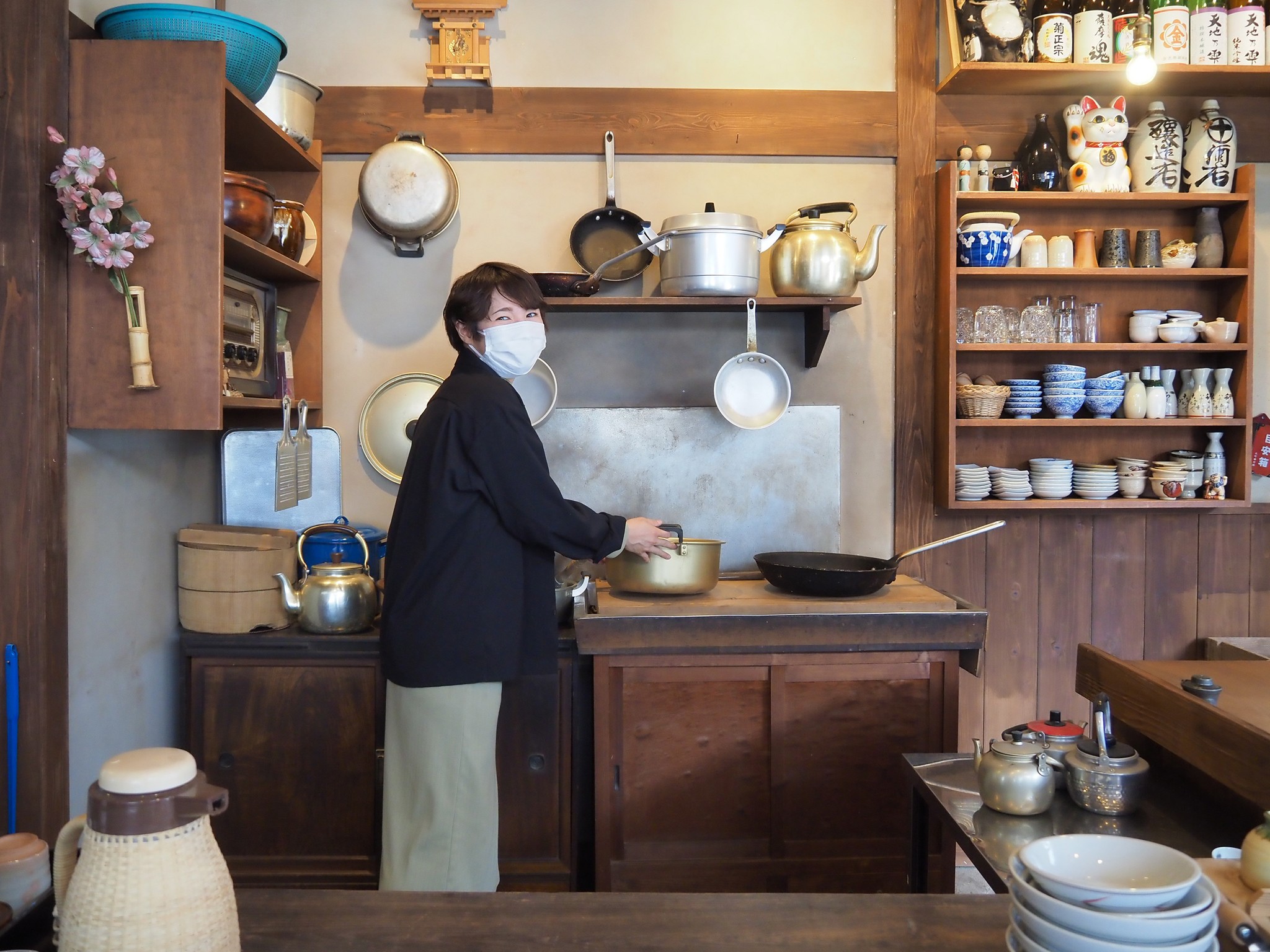 かつては食堂でしたが、長い間空き店舗となっていました。老朽化のため取り壊しの話が出たときに「貴重な建物だから、もったいない。運営させてください」と名乗りを上げたのが、移住者で元・浅口市地域おこし協力隊の沖村舞子さん。住民との建物改修を経て、一般社団法人moko’aとして大谷みかげスクエアを運営しています。映画公開期間中も出店希望者を募り、「小料理夕なぎ」の世界観を堪能できる場となりました。