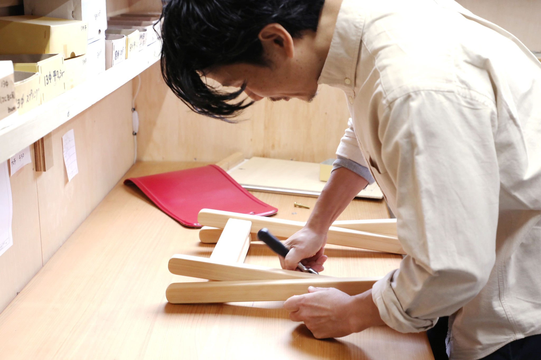 家の中の全ての家具を作っているヒノキクラフト。学習机を扱う時にランドセルを展示に使用する機会が多く、ランドセルとヒノキを使って何か出来ないか。岩本さんは考えました。