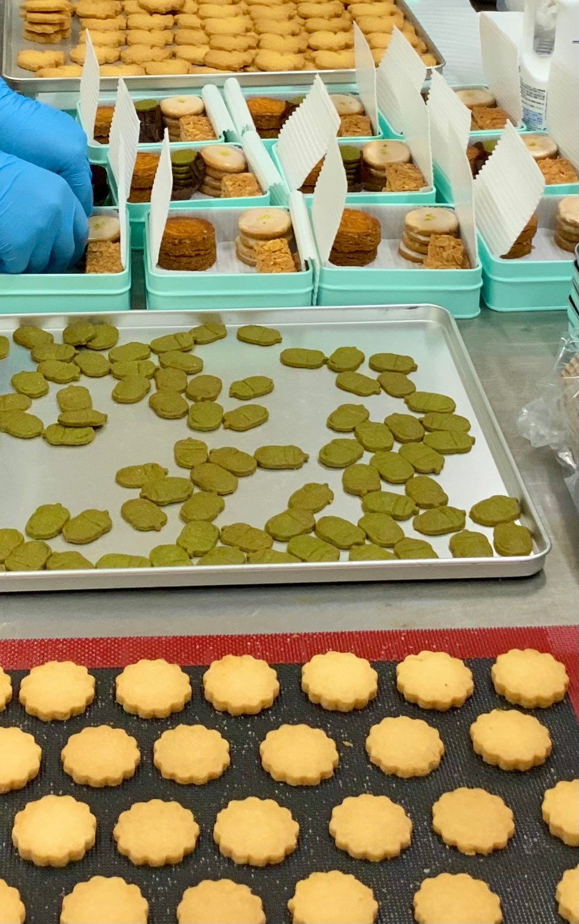 「クッキーの製造に関しては、川島が全面的に行っています。ベースは洋菓子ですが、和菓子で使用している和三盆や抹茶を使っています。また、クッキー缶の中に入っている米粉クッキーはお餅に使用している上新粉を使用しているので、口の中に入れた時にホロっと口の中でほどける食感を楽しんでいただけると思います」
