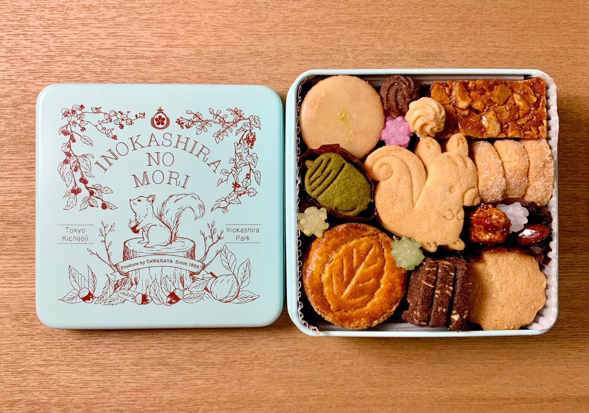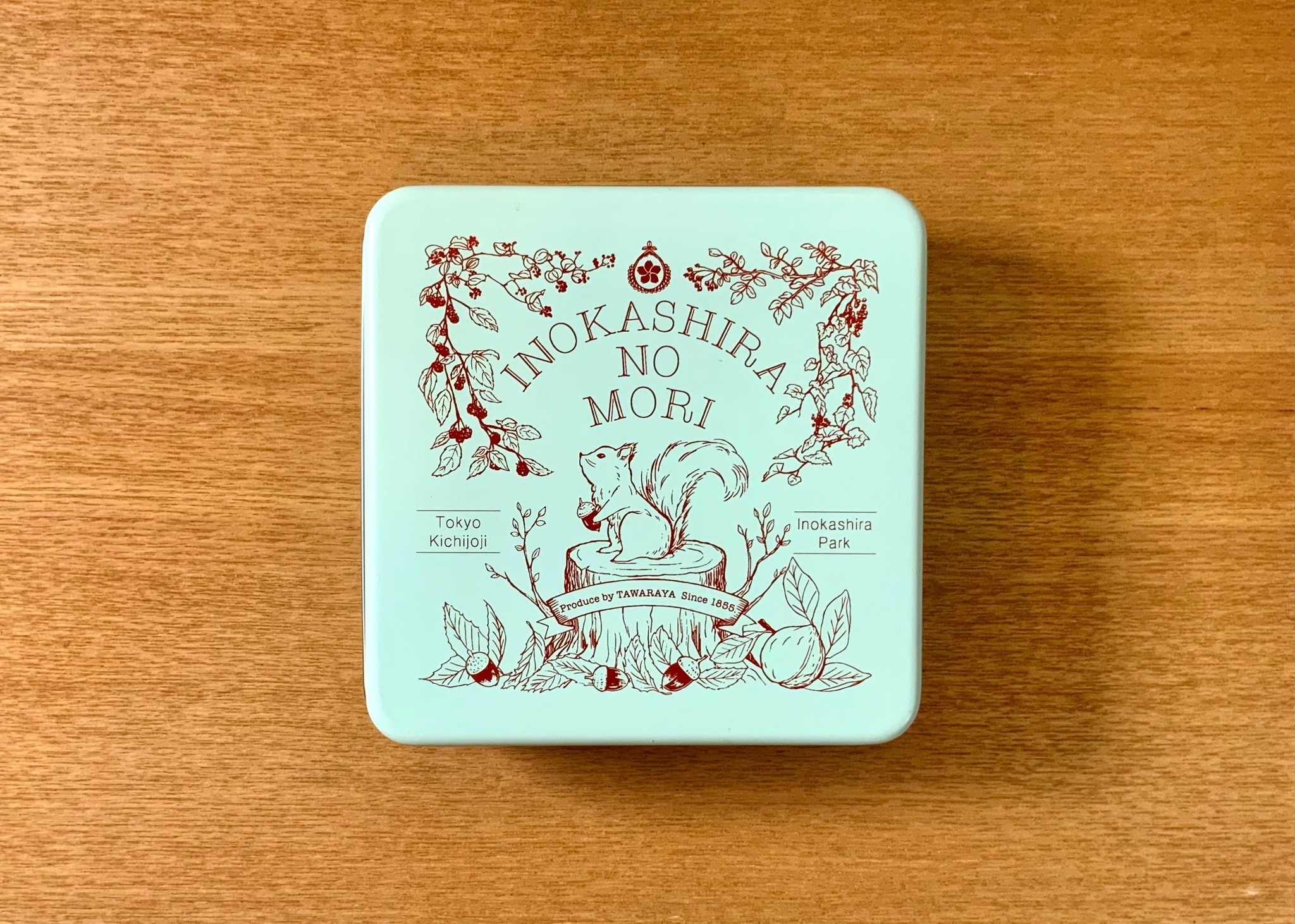 クッキー缶に描かれた絵本の表紙のようなデザインは、友田さんが手がけたという。近くにある井の頭公園内の動物園にいるリスをモチーフに、和菓子店ならではのテイストも盛り込んだ。