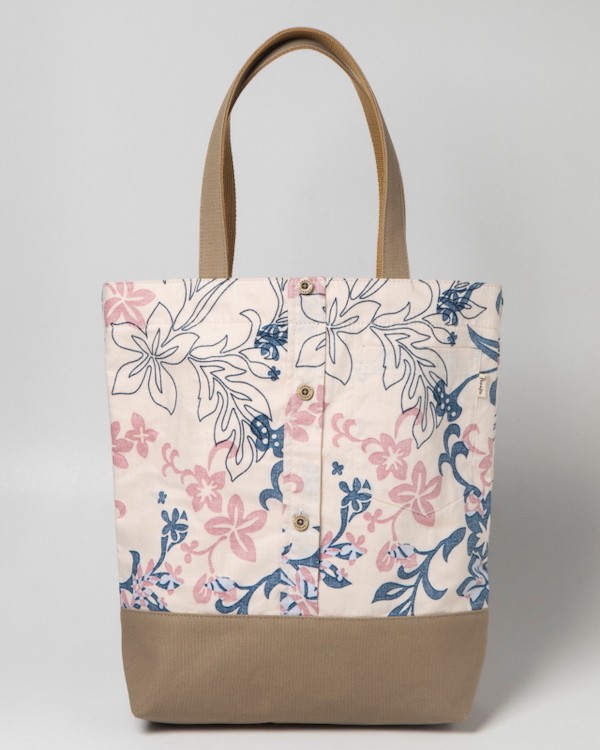 バッグ作りに携わるなかで近年、気になるようになったのは、年々廃棄される衣服量の問題。「同じ頃、沖縄の複数の友人から、着る機会のないかりゆしウエアがタンスの中にいっぱいあって、どうしようかと思ってるという声をよく耳にするようになって」と上原さん。