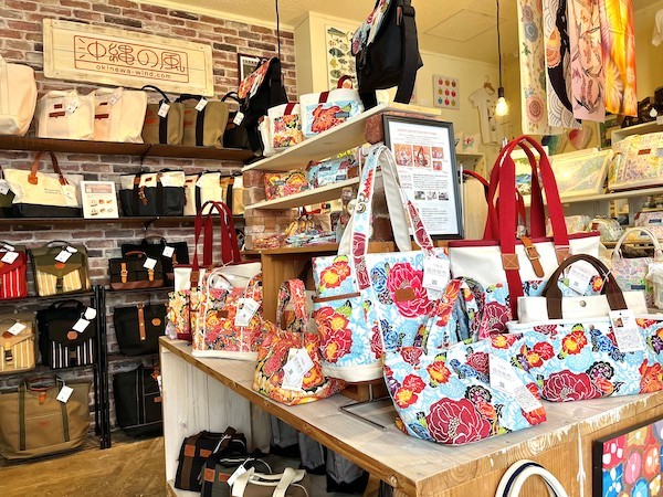 その後、以前からモノ作りが好きだったという特技を生かし、上原さん自身が企画・デザインした帆布バッグを八重瀬町の工房で製作して販売。現在は「琉球帆布」の名前でショップの人気アイテムの一つとなっている。