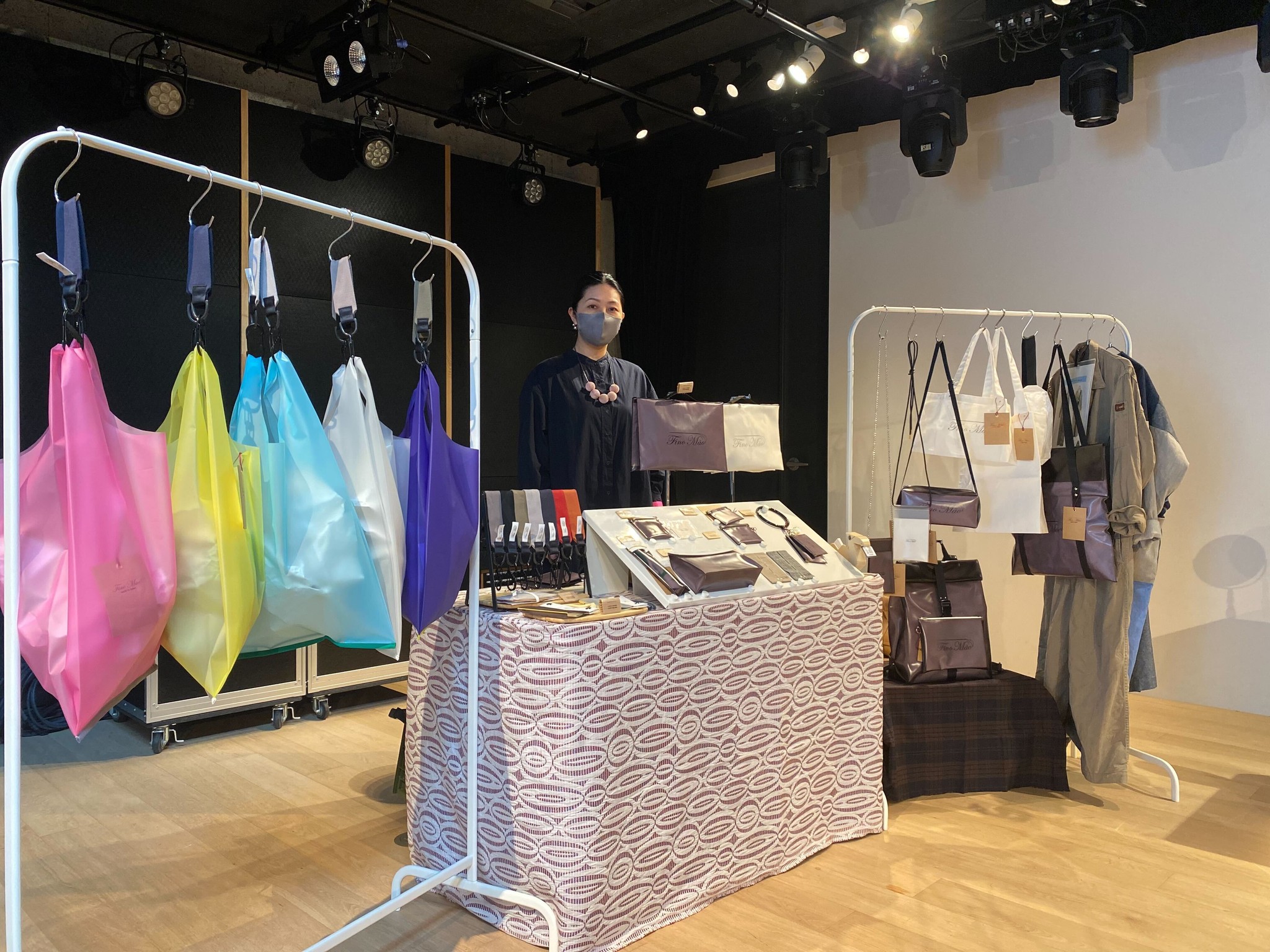 約10年会社に勤めた後、衣装製作の道に進み、多種多様な衣装の提案や製作を行ってきた生駒さん。そこで培った個々への提案力を活かし、2018年にFino Mãoを立ち上げた。その商品は、洗えるマスクカバーケースや色のカスタマイズができるバッグなど、ユニークな工夫が凝らされている。「ありそうでなかった」と客からは好評だ。