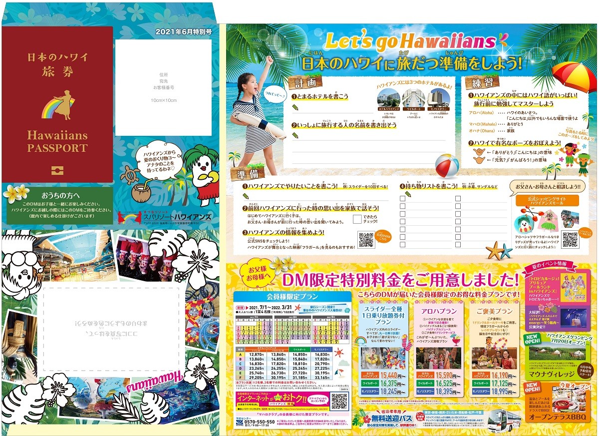 最も特徴的な取り組みが、2021年に第36回全日本DM大賞で銀賞に輝いた子ども向けのDMだ。「日本のハワイ旅券」を銘打ったこのDMは、子どもたちが旅の準備と計画、旅の中でのミッションなどをワーク形式で記入するつくりとなっている。プールやハワイの文化に触れて感じたことを振り返り可能なワークもあるため、後から見返せば家族旅行の思い出にもなる。