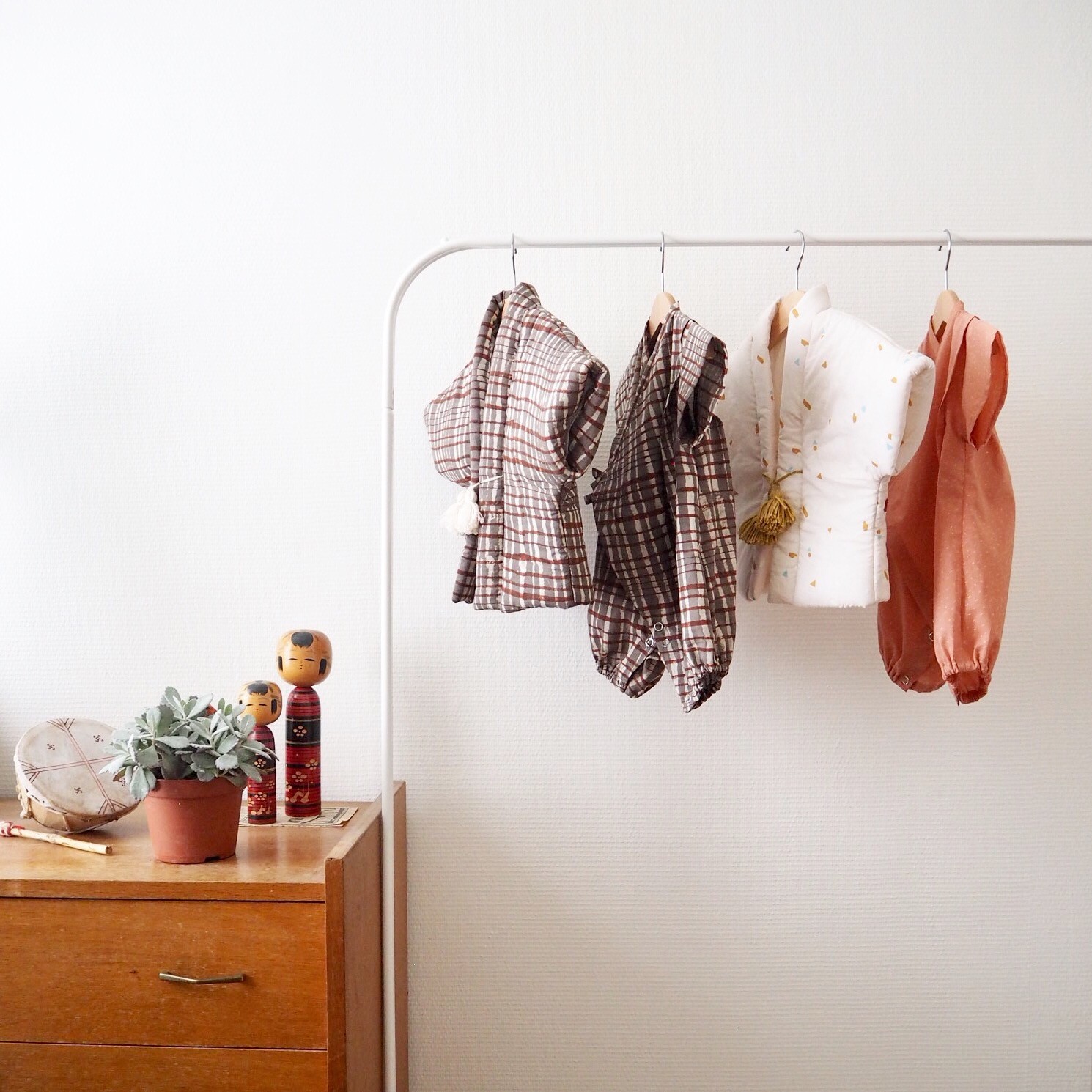 「長男を妊娠中に、何か日本っぽい子ども服を着せたいなと探したんですがなかなか見つからなくて。なら自分で作ってみようとロンパース型の甚平を試作してみました。それが、フランス人の友人や親戚に好評だったんです。以前から日本とフランスの文化が融合したものを作りたいなと漠然と思っていたので、ならばロンパース型の甚平を一般の方向けにも提案してみようとブランドを立ち上げました」