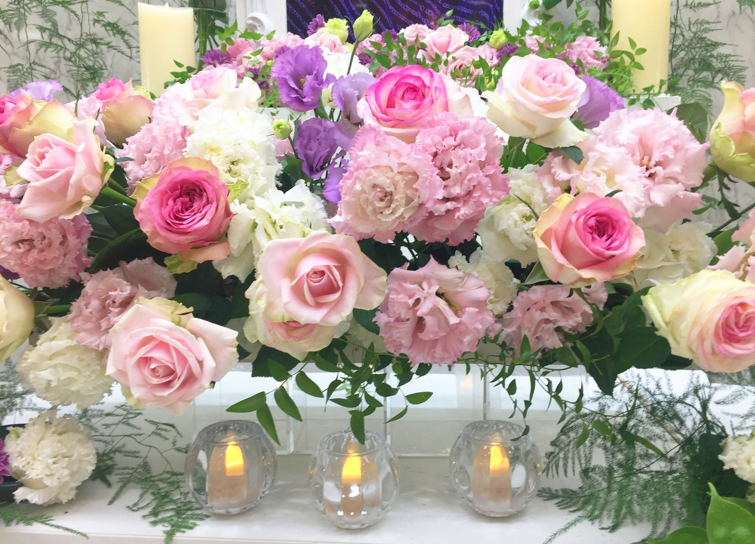 わたるではさまざまな色の花を使い、故人の家族の要望も聞きながら、時には華やかに祭壇をつくります。