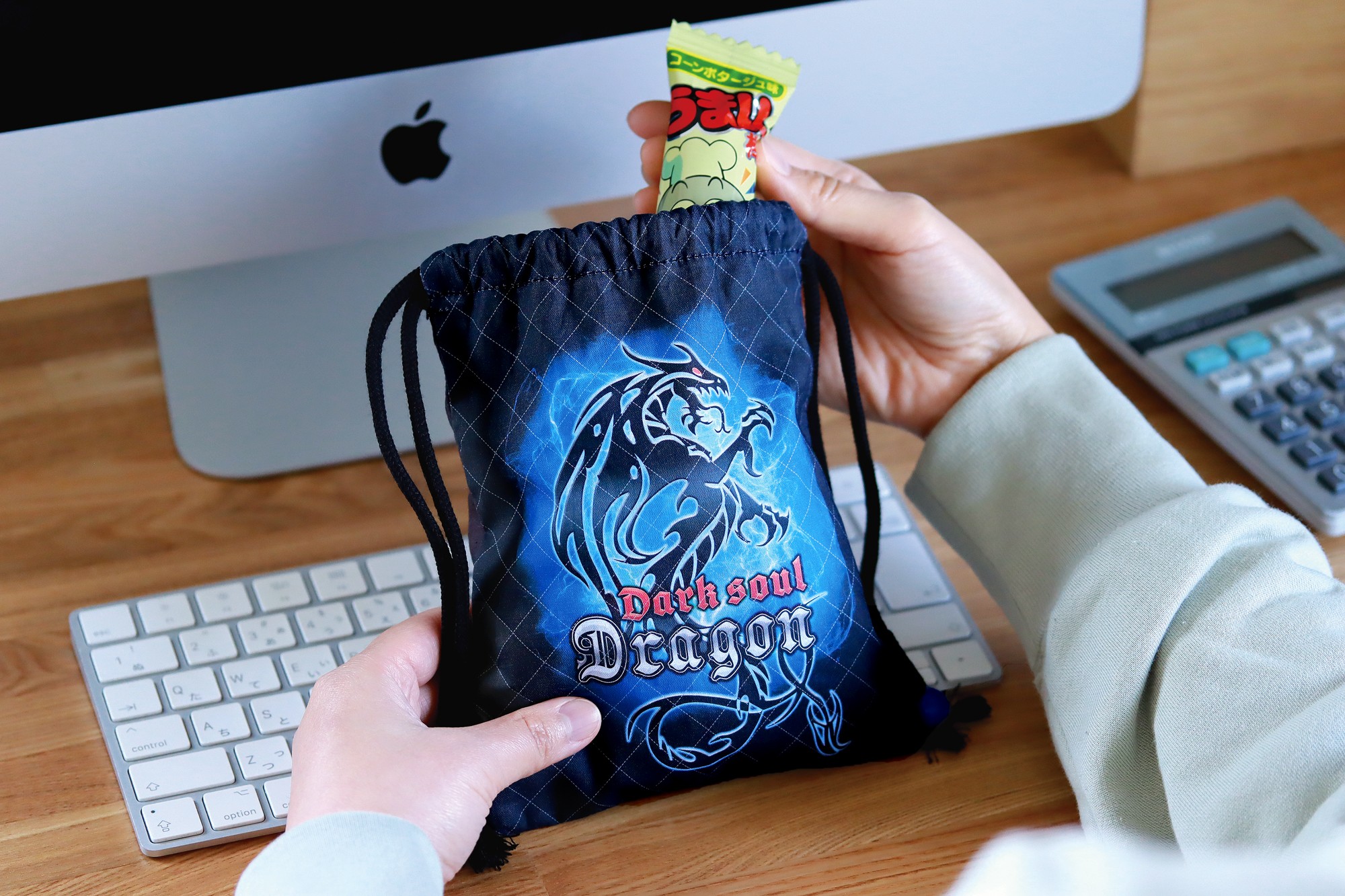 ヒット商品の裏には、反応が薄かった試作品もある。楢崎さんが小学校時代に、多くの男子が持っていたドラゴンのナップサック型巾着袋。当時のものを忠実に再現したが、「世代間ギャップがあったのかもしれない」と話す。