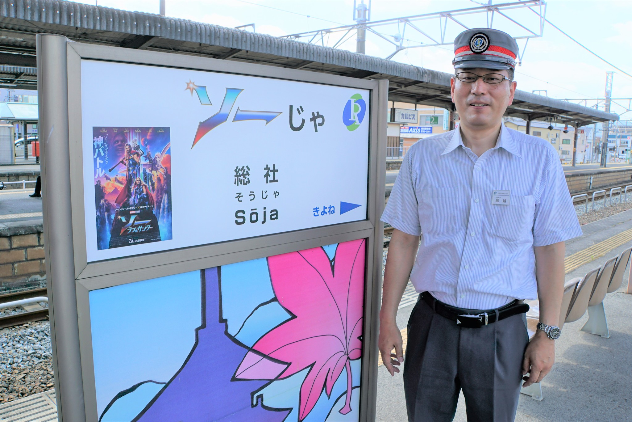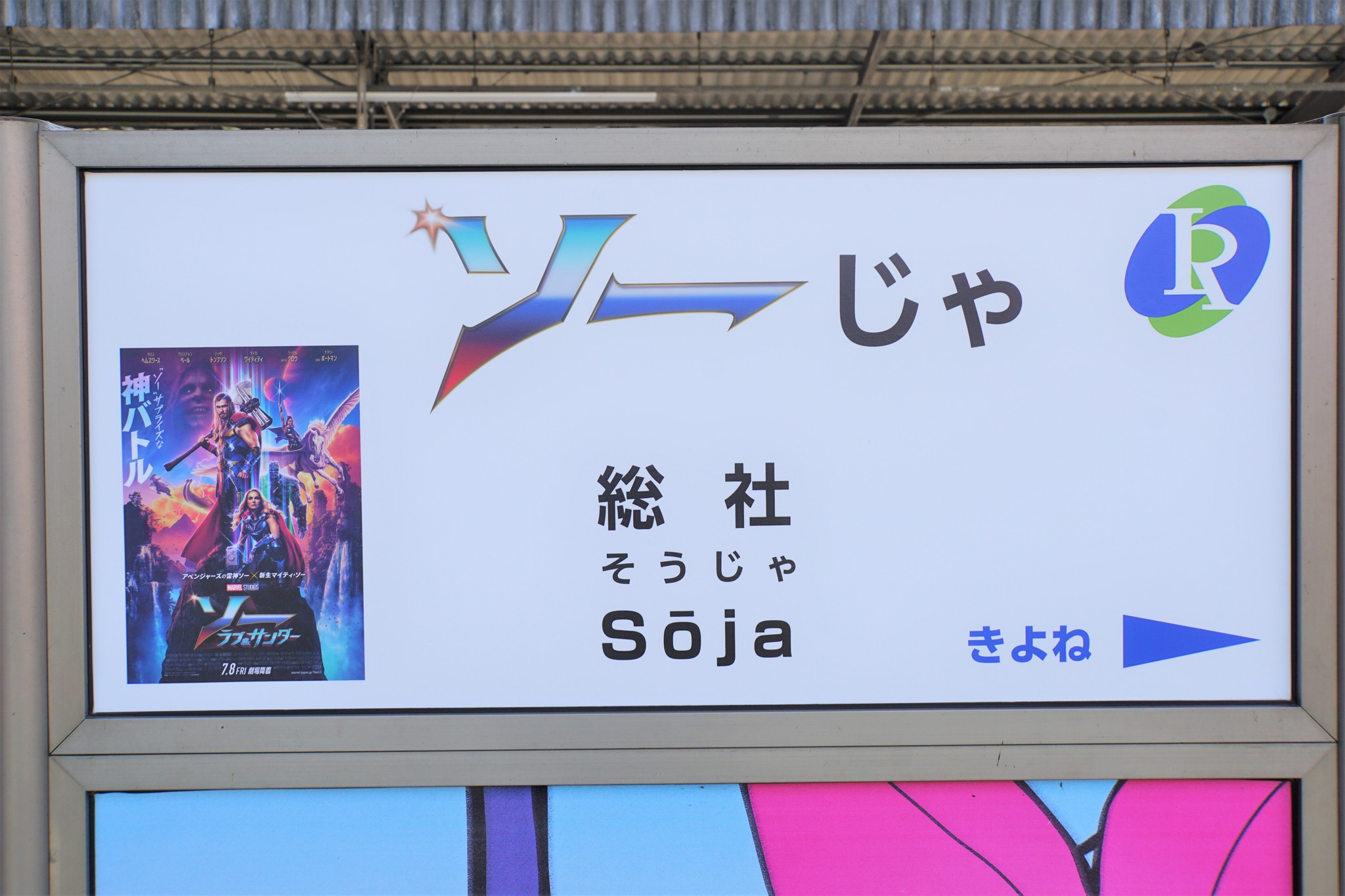映画公開記念の看板は7月末までの掲出。ソーの活躍を劇場で観たあとは、ぜひ「ソーじゃ駅」で記念撮影でもいかがでしょうか。