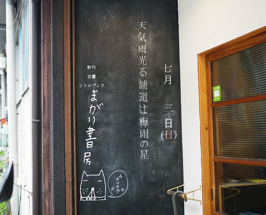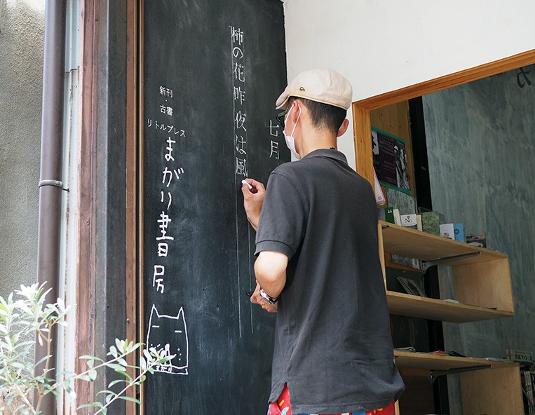 「最初は新刊の入荷案内を書くつもりで黒板を設置したんですが、本が入ってこない日もあるため日記の代わりに俳句を書いています。俳句なら文字数が短くて済むし、型が決まっているから」
