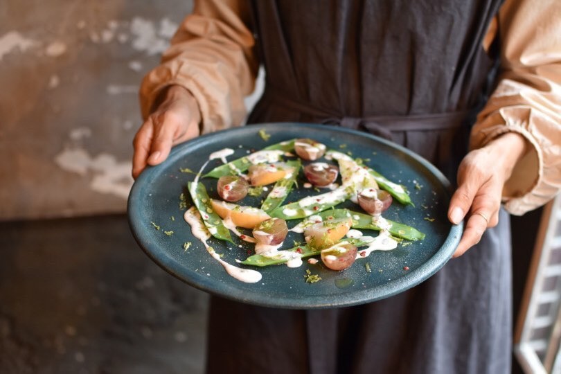 今風な言葉で言うなら、「映える」という言葉がぴったりな料理の数々。料理を器にびっしりと盛り付けるのではなく、器と料理の間に余白をもたせて、料理を引き立たせる。